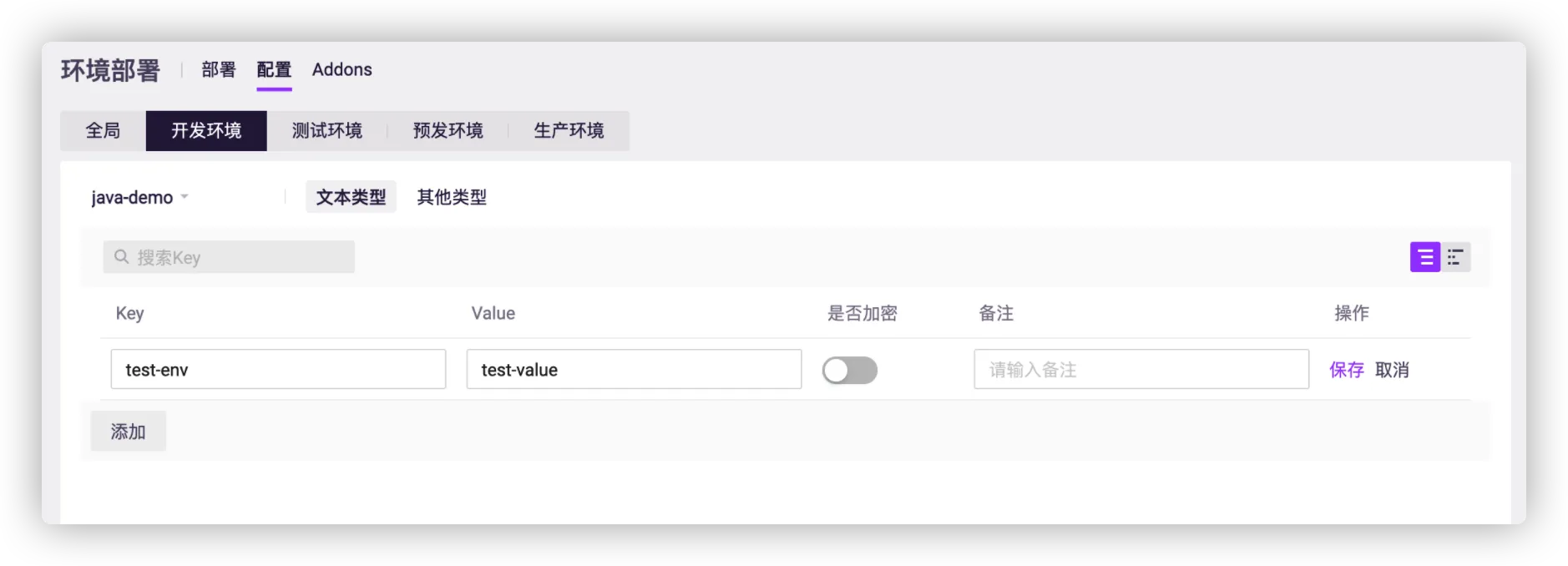 进入 应用中心 > 环境部署 > 配置 > 选择环境/全局 > 选择应用。