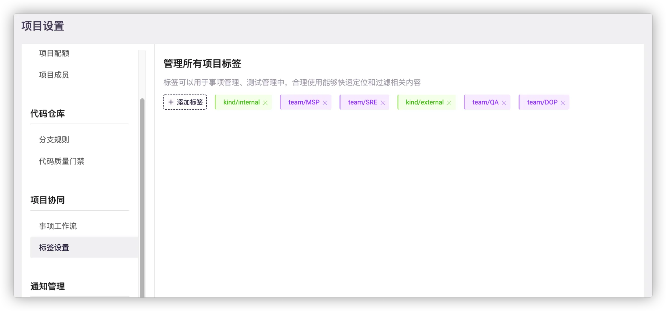 标签可用于事项管理和测试管理,以便快速定位和过滤相关内容。