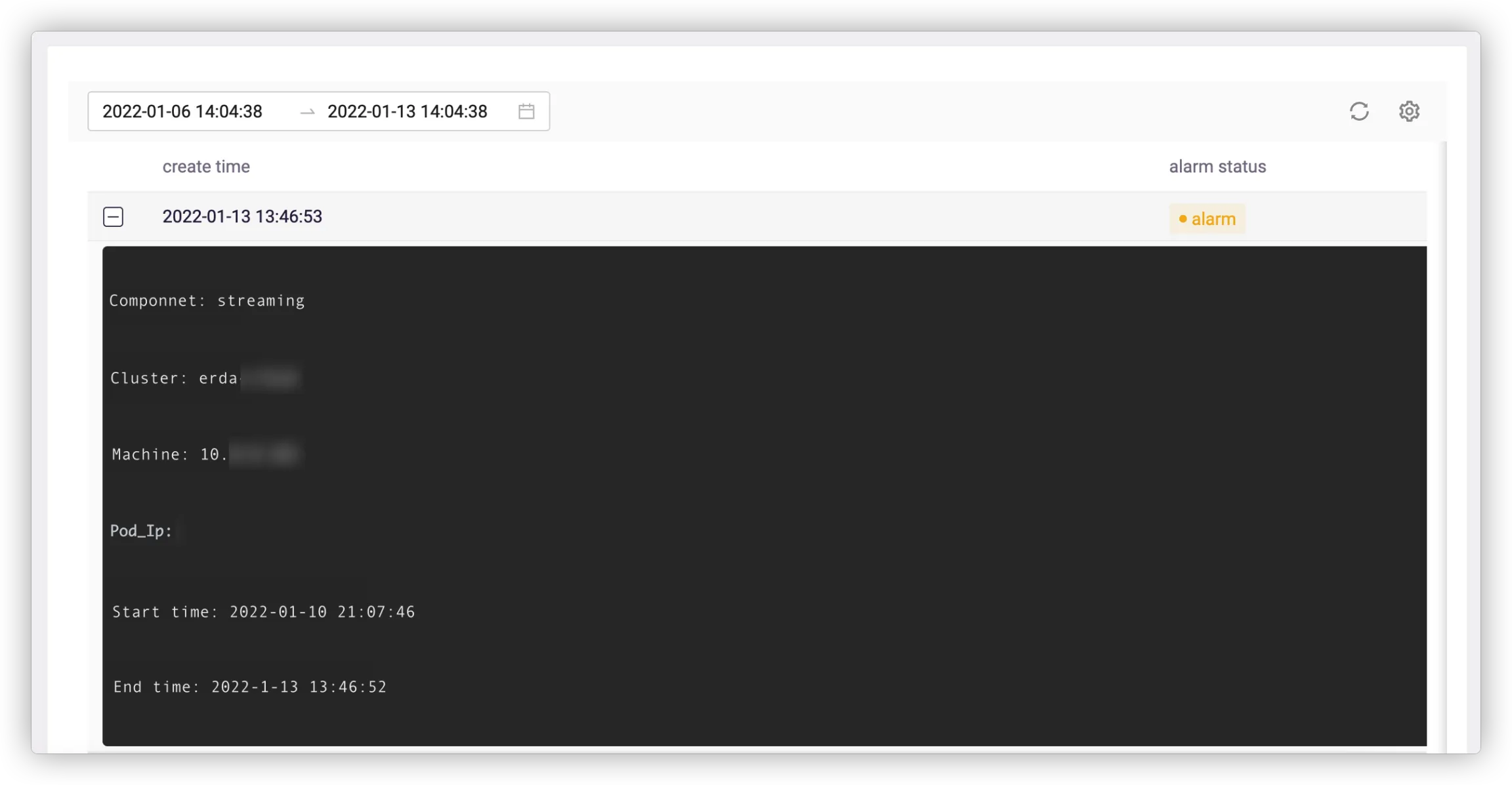 Click + on the left side of the alarm record to view the details.