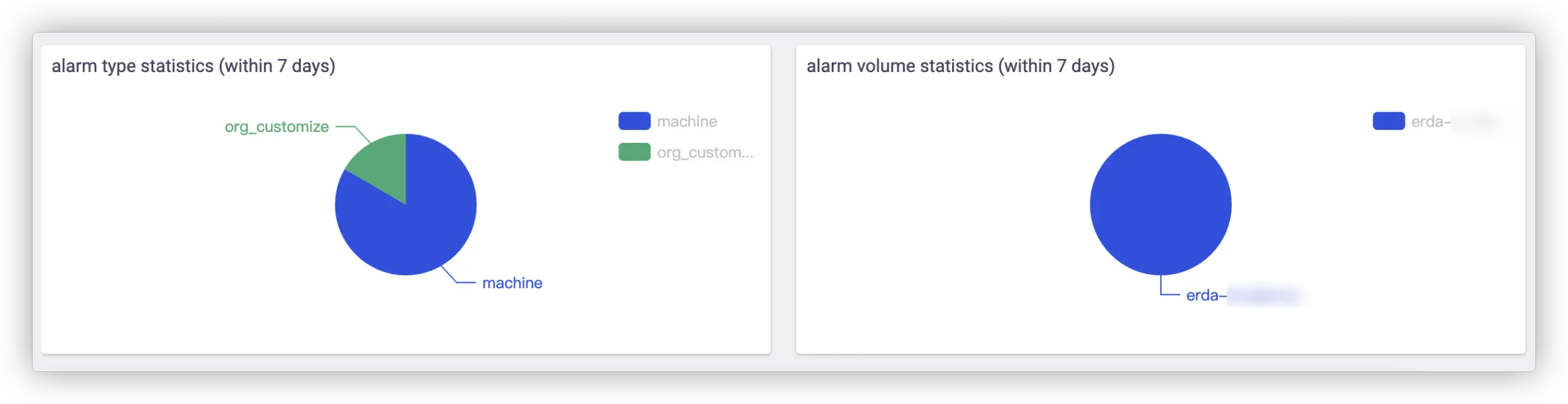 The data of different clusters and alarm types is displayed in different colors to distinguish them. The data and percentage of alarm types and alarm volume is showed in pie charts.