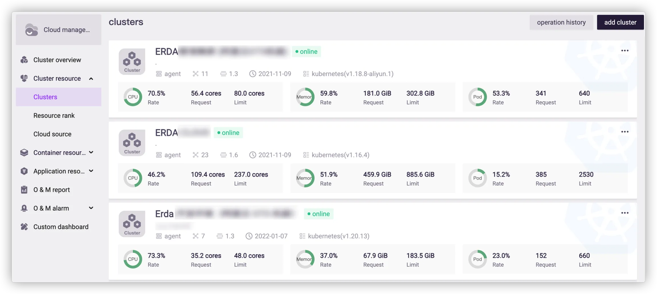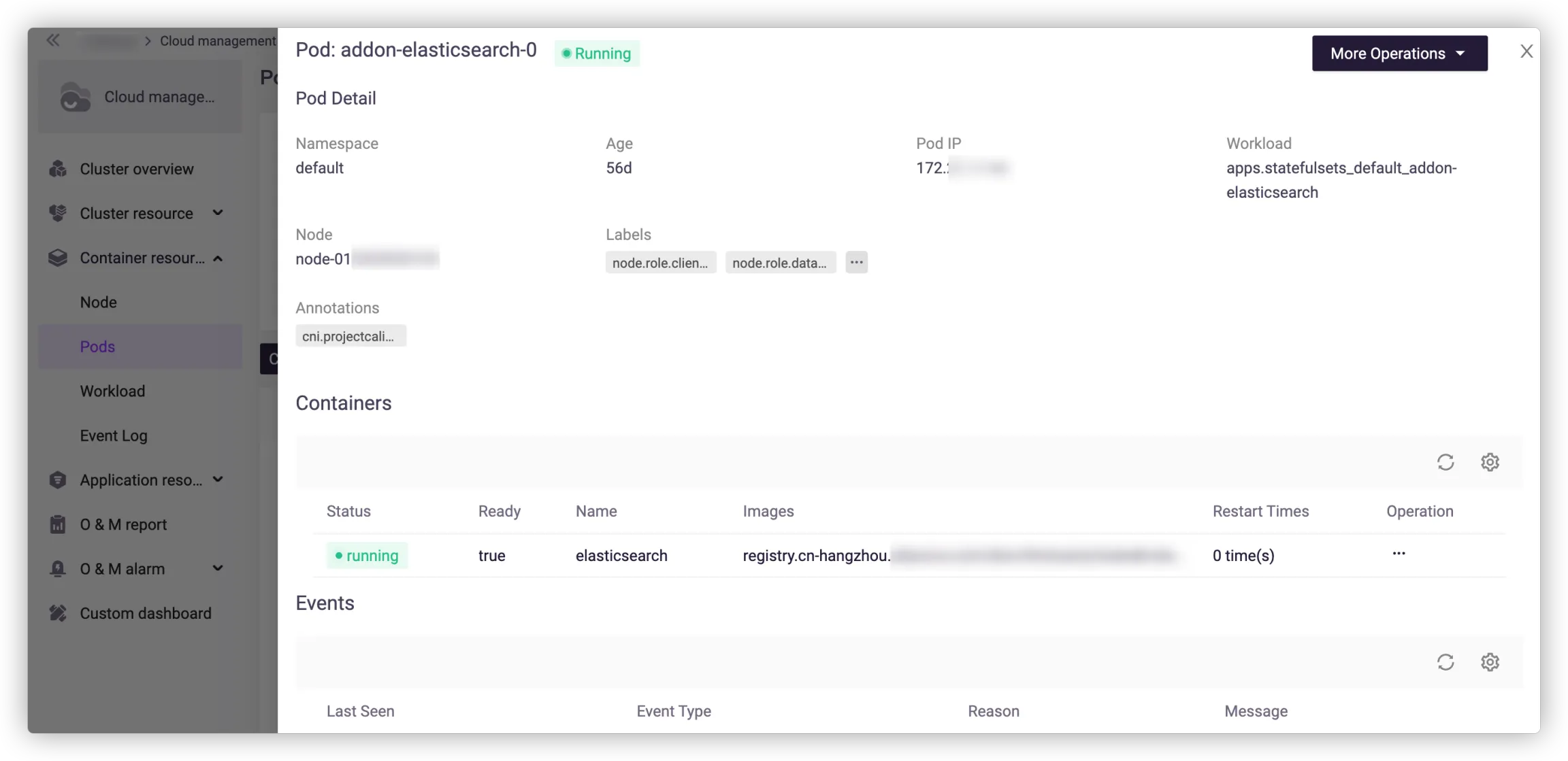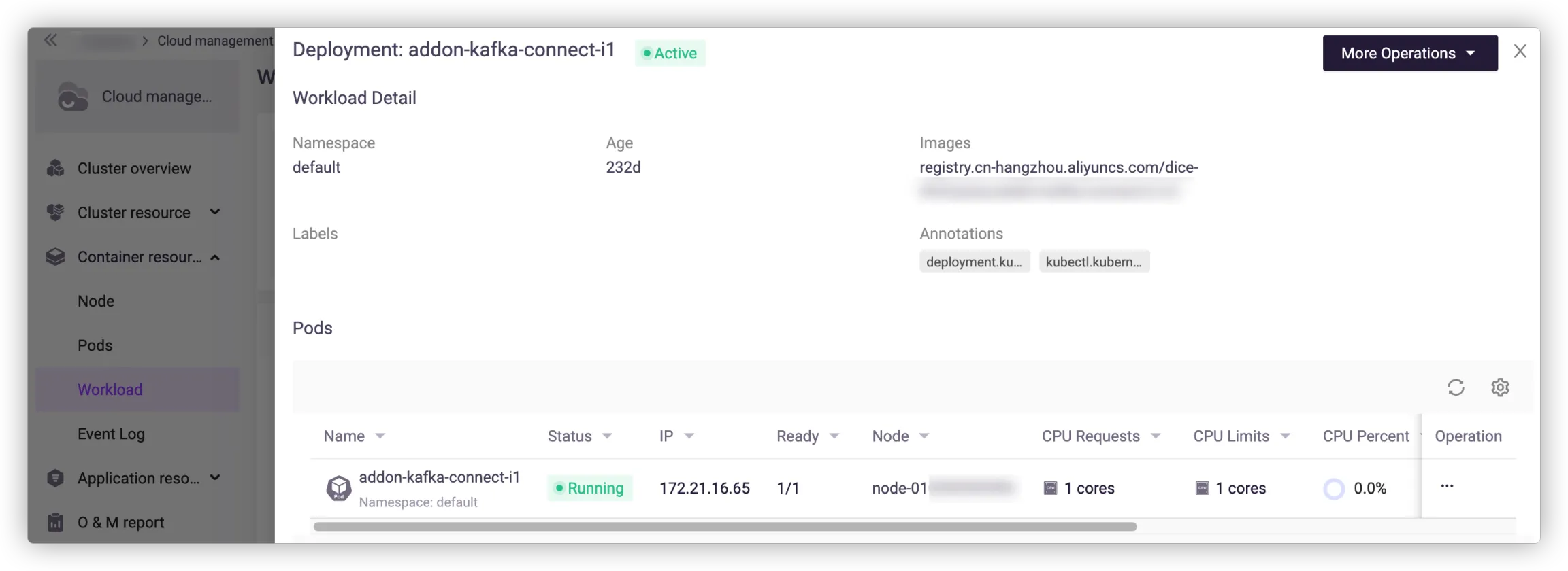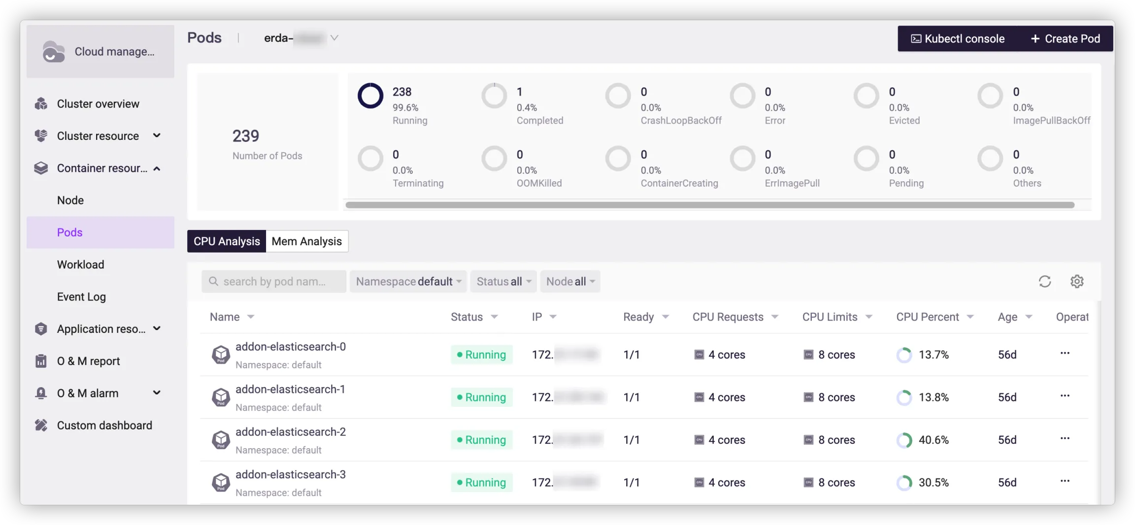 Go to Cloud Management > Container Resource. It shows information such as nodes, pods, workloads and event logs of clusters, and provides the kubectl command line tool with audit features.