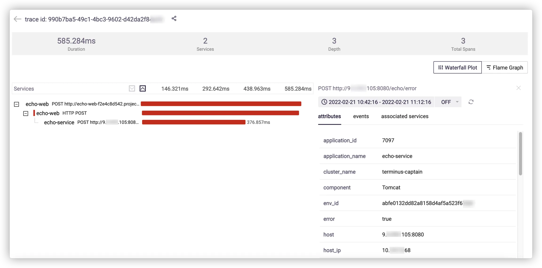 As can be seen from the above figure, the /echo/error interface of echo-service takes 500+ milliseconds and leads to slow requests.
