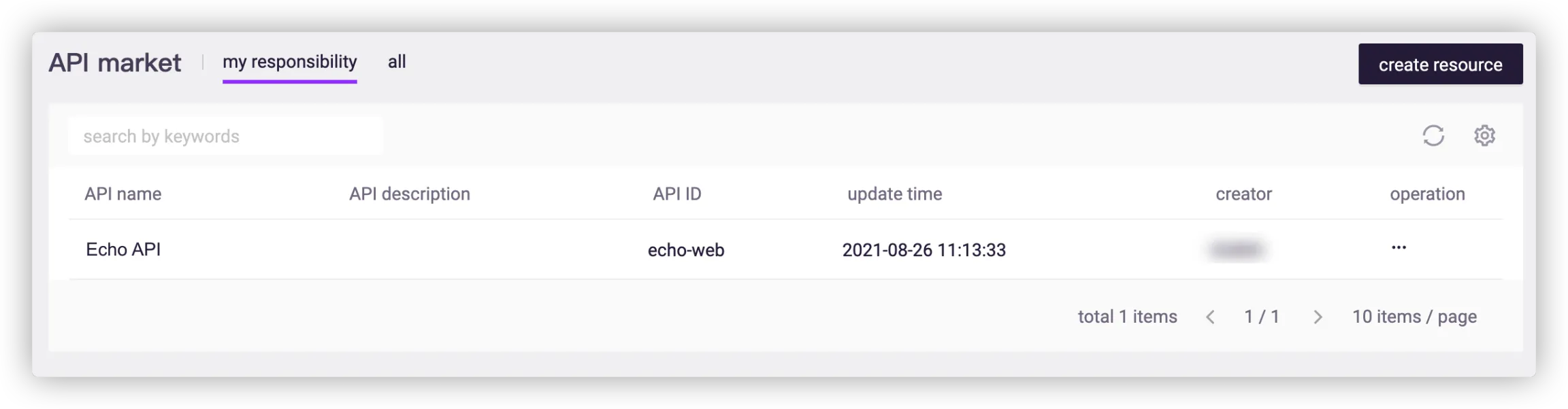 Go to DevOps Platform > API > API Market, and click Manage of echo API.