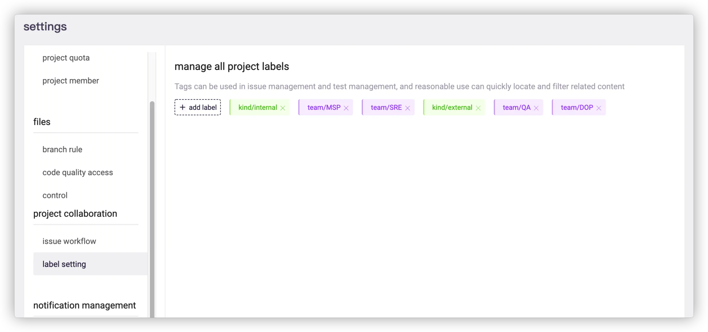 Go to DevOps Platform > Projects > Settings > Label Setting.