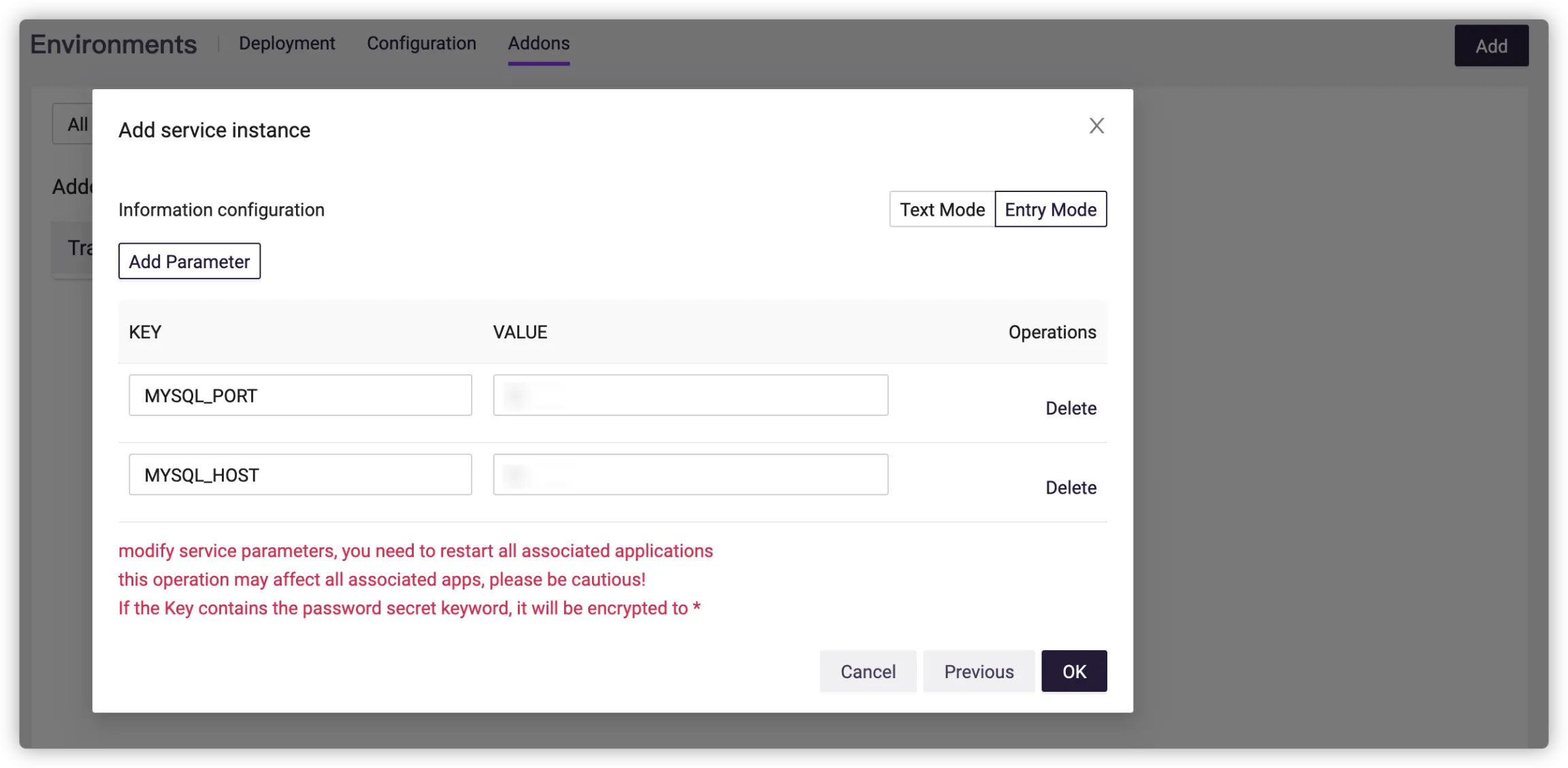 After modifying the addon parameters, all associated applications need to be restarted, which may affect these applications. Please operate with caution.