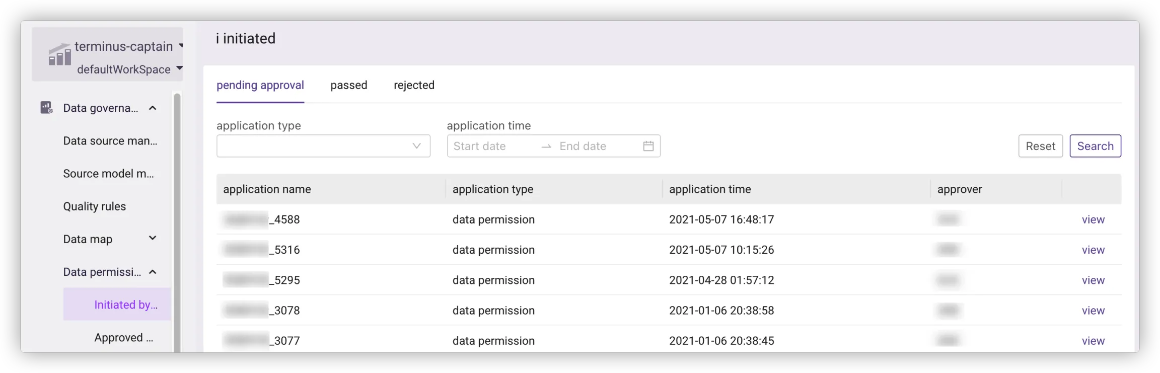 Once the application is submitted, it will appear in Data Permission > Approved by Me, where the model owner can view the details, reject or approve the application.