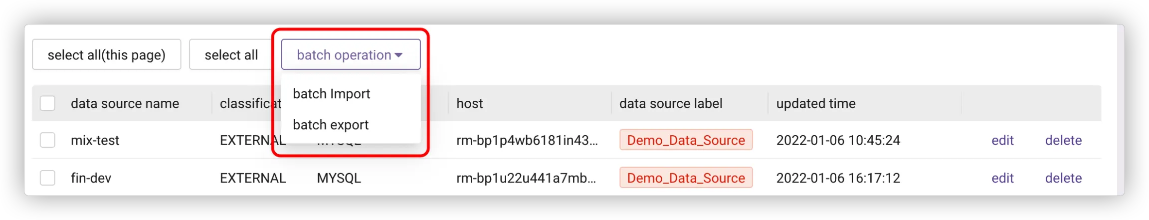 The platform supports batch importing and exporting of data sources, which is fast and convenient.