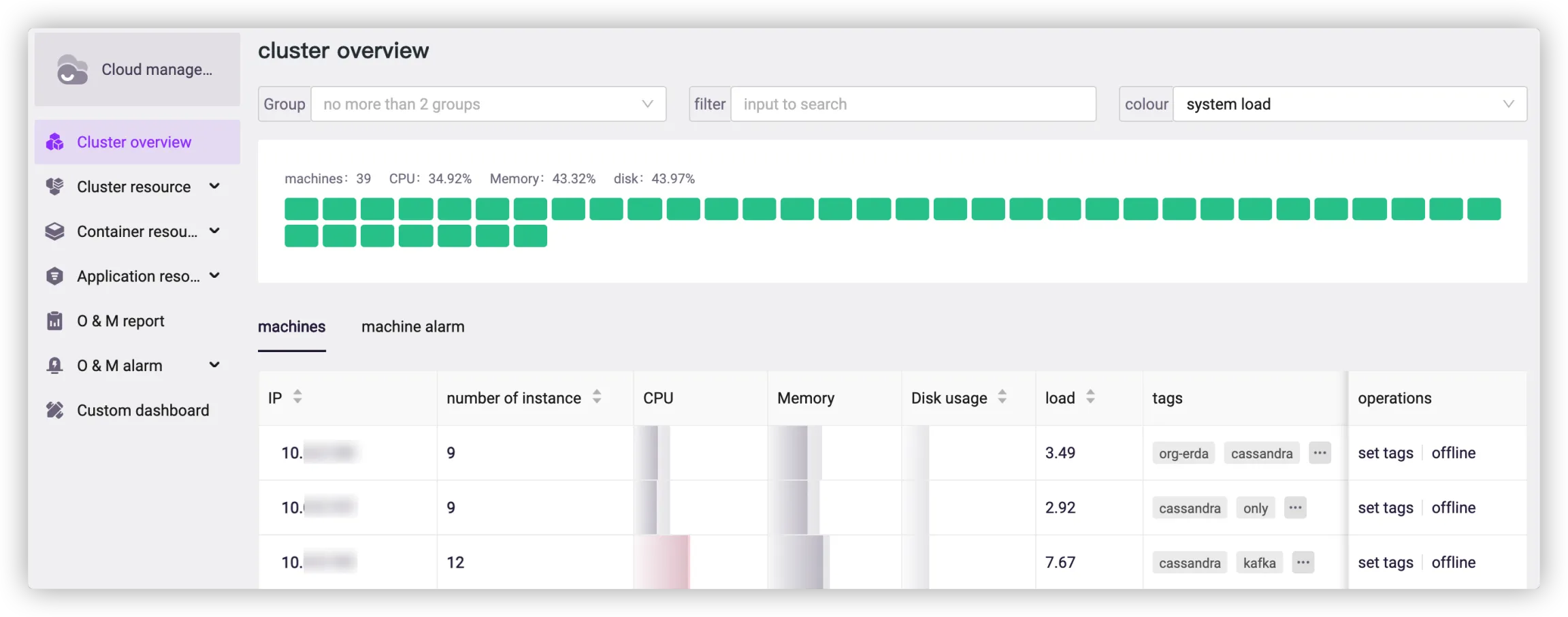 * After cluster importing, you can view cluster status on the **Clusters** page, and view monitoring information on the **Cluster Overview** page.