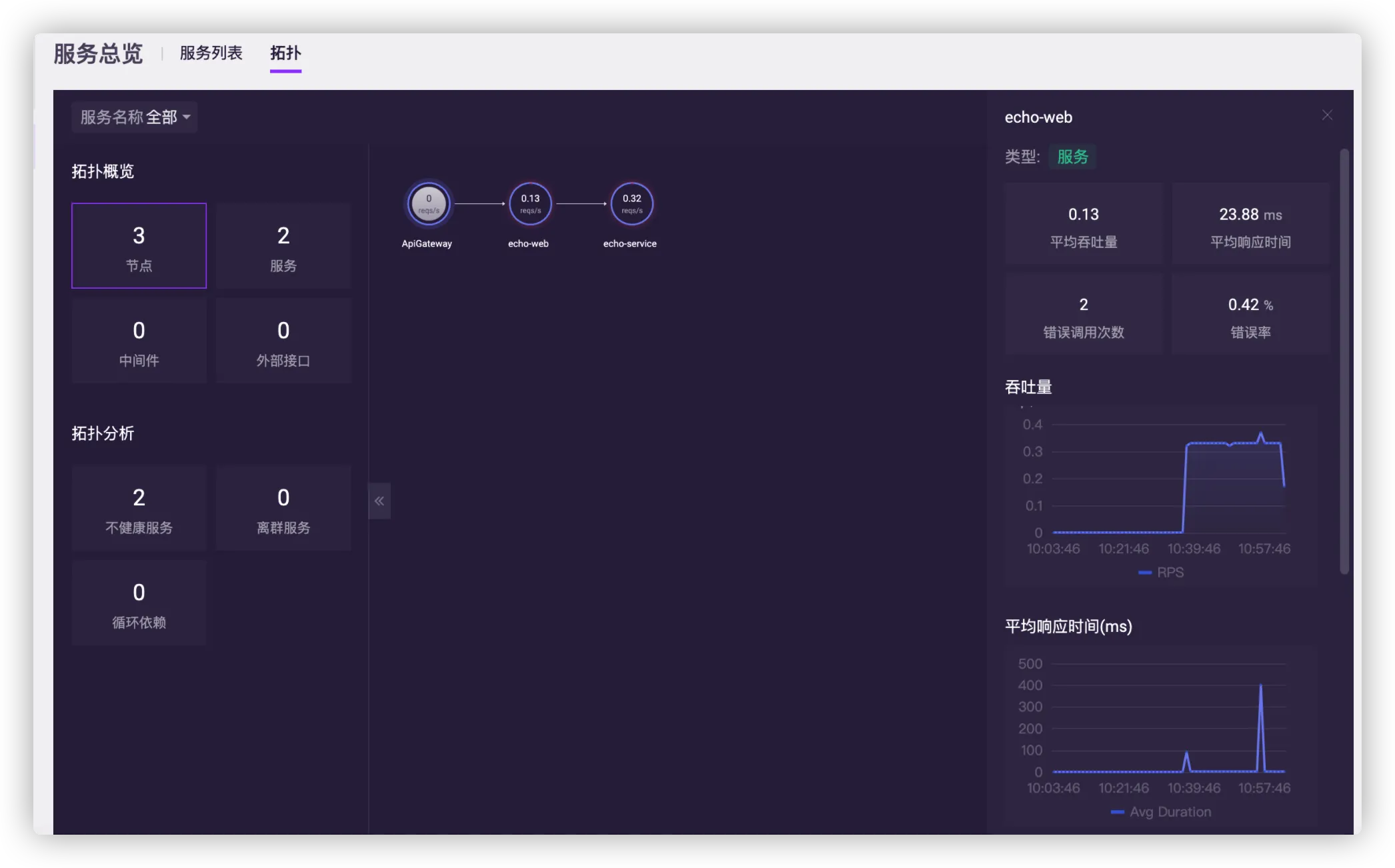 - 提供 /api/error API 调用 echo-service 制造异常。