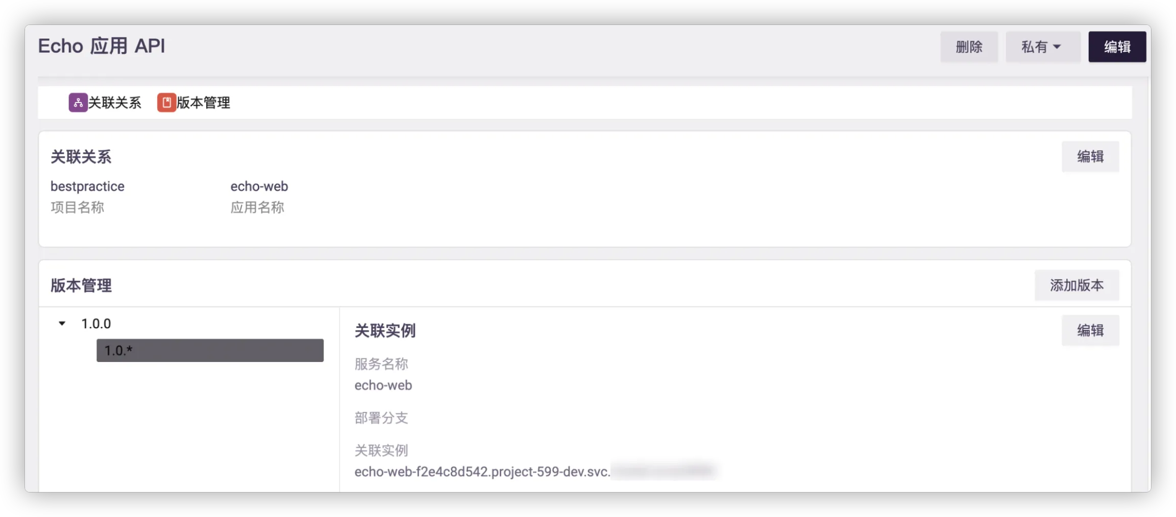- 关联关系:选择项目名称为 bestpractice,应用名称为 echo-web。