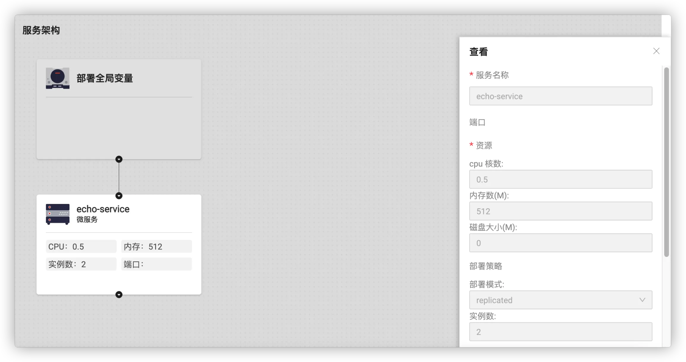 - 应用下可包含多个服务,本示例中应用名称与服务名称均为 echo-web,仅是一种同名的情况。