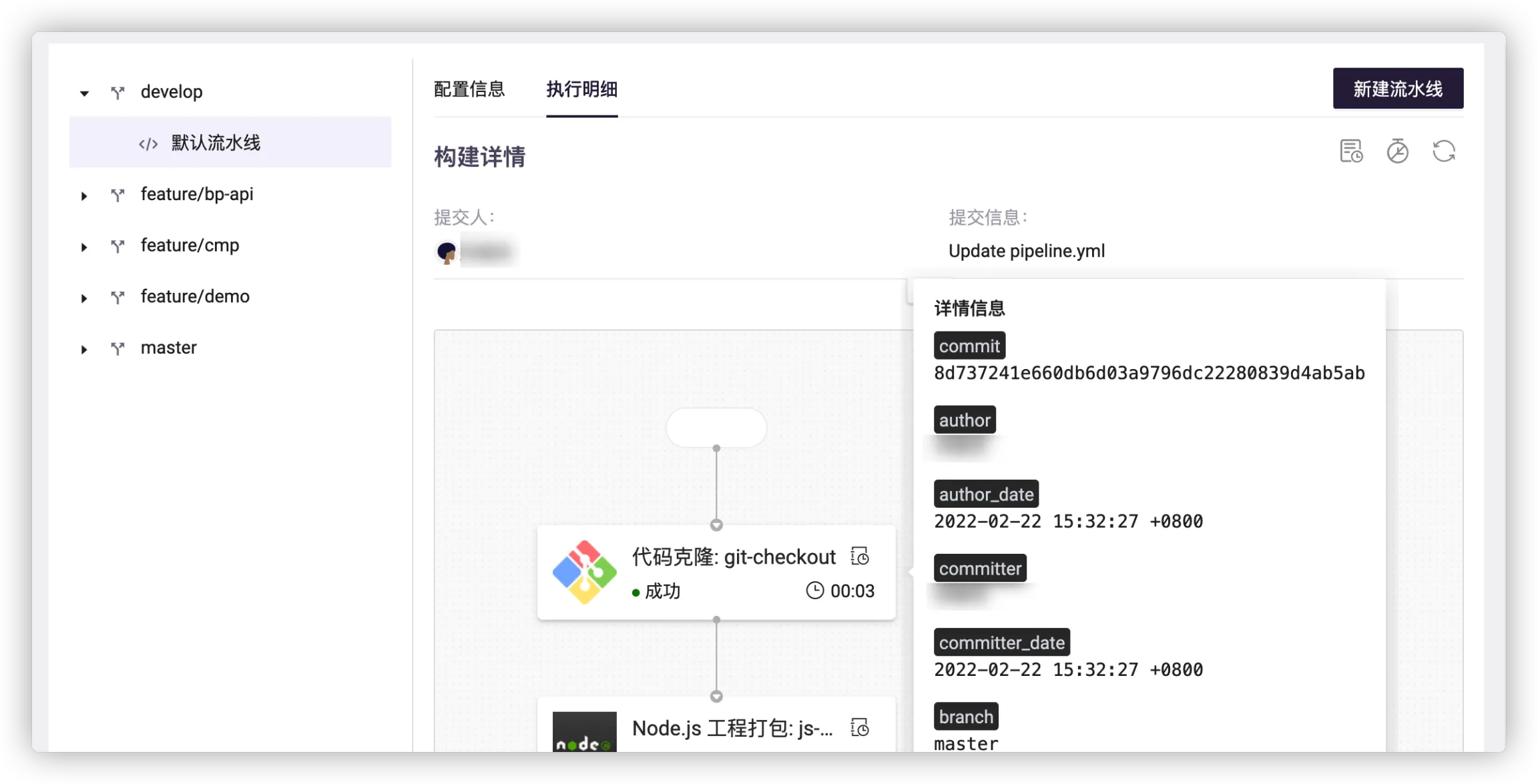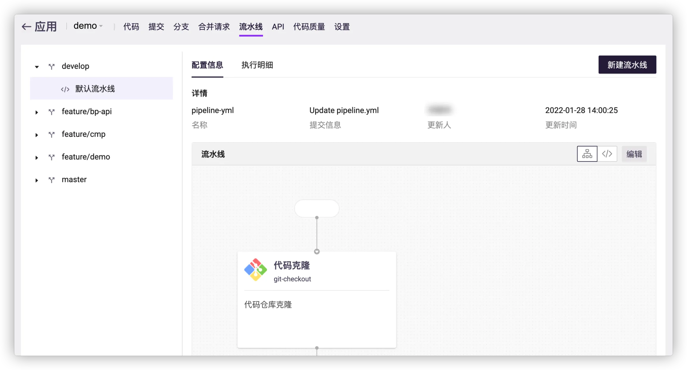 进入 我的应用 > 流水线 > 选择分支和流水线。