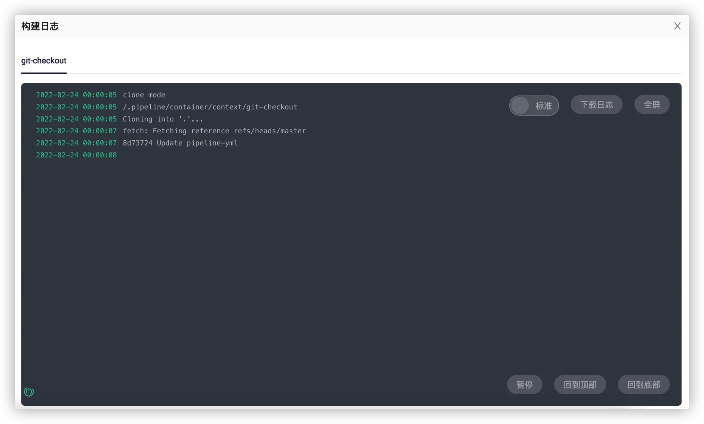 点击相应 Action 上的日志按钮可查看其执行日志,点击标准按钮可切换为错误执行日志。