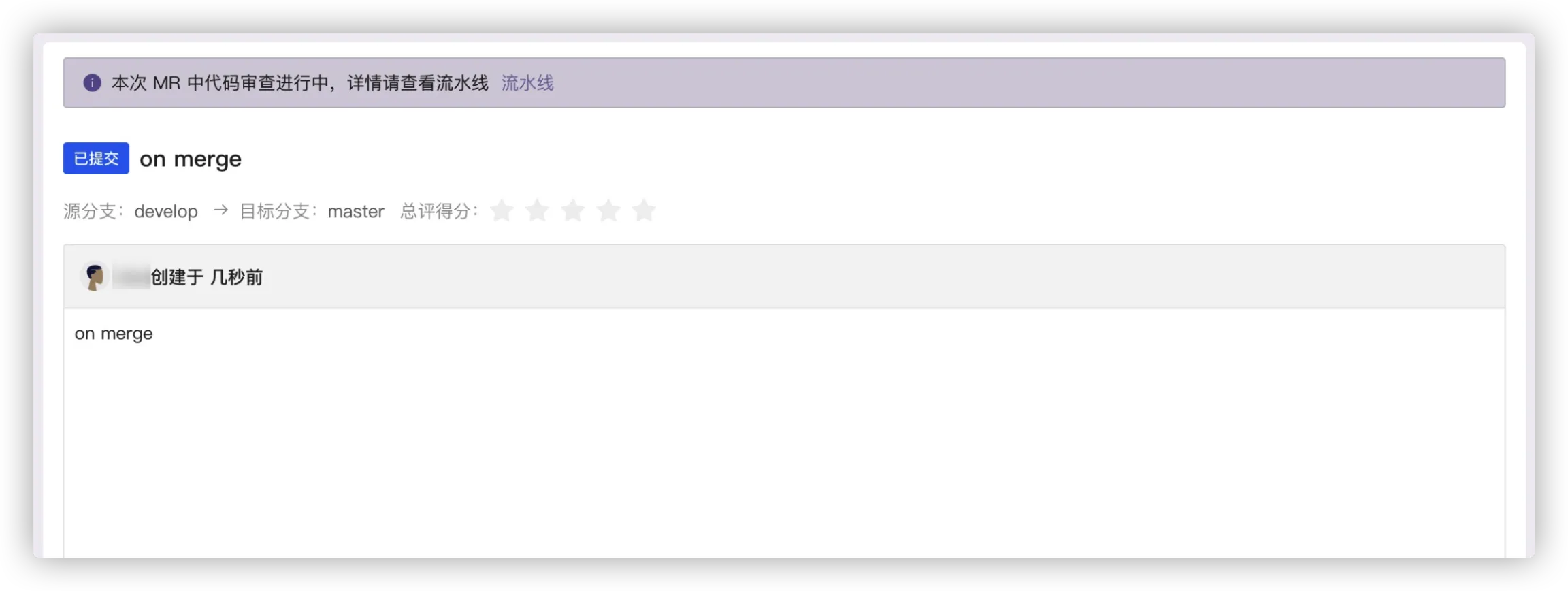 develop 中包含 on merge 的 pipeline 可触发,master 中包含 on push 的 pipeline 亦可触发。
