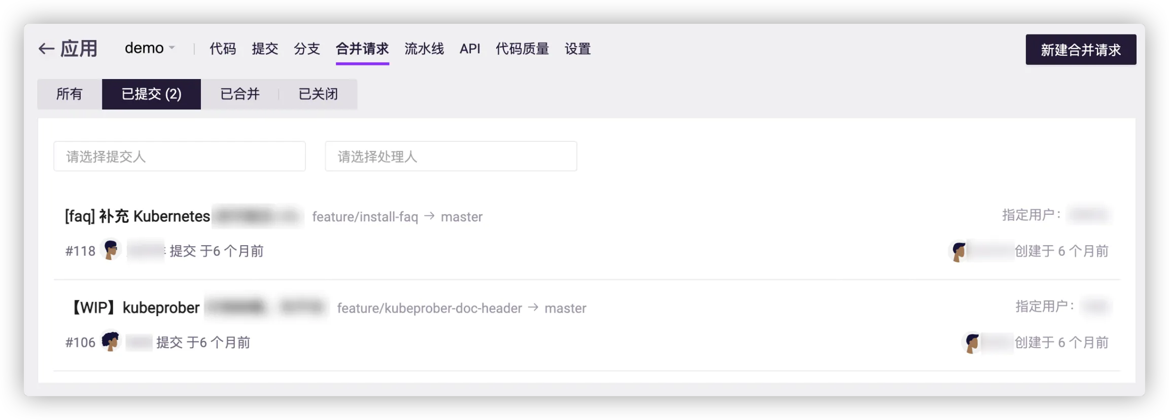 内置代码仓库支持合并请求操作。关于 Git 工作流更多信息,请参见 Gitflow 设计理念。