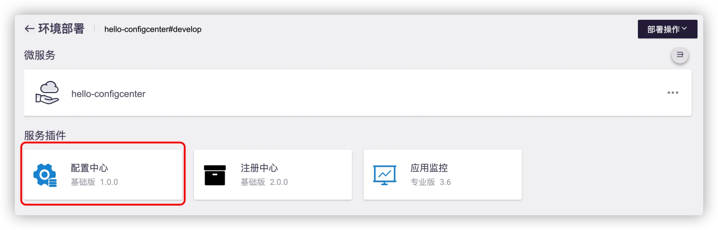 若 dice.yml 引用了配置中心,服务部署成功后,服务插件中将出现配置中心的控制台入口。