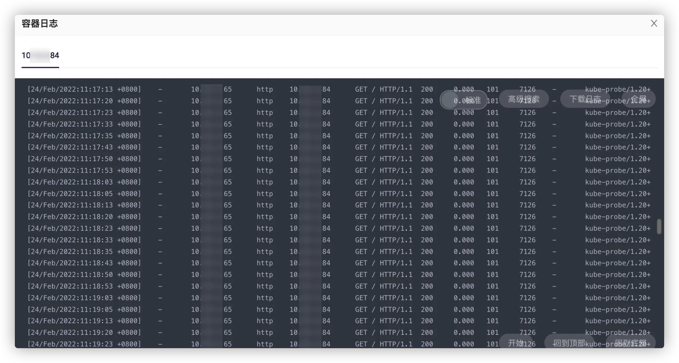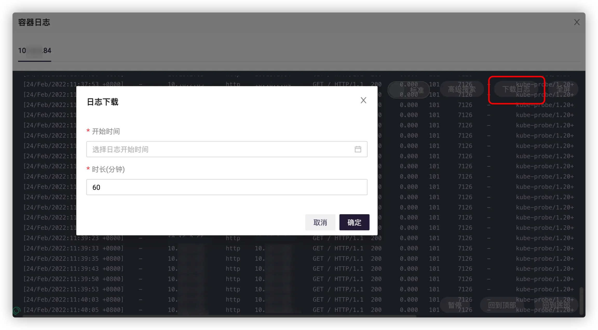 如需通过本地的文本工具处理或查看日志,或需将某段时间的日志发送至他人以协助排查问题,可点击 下载日志 按钮下载日志至本地。