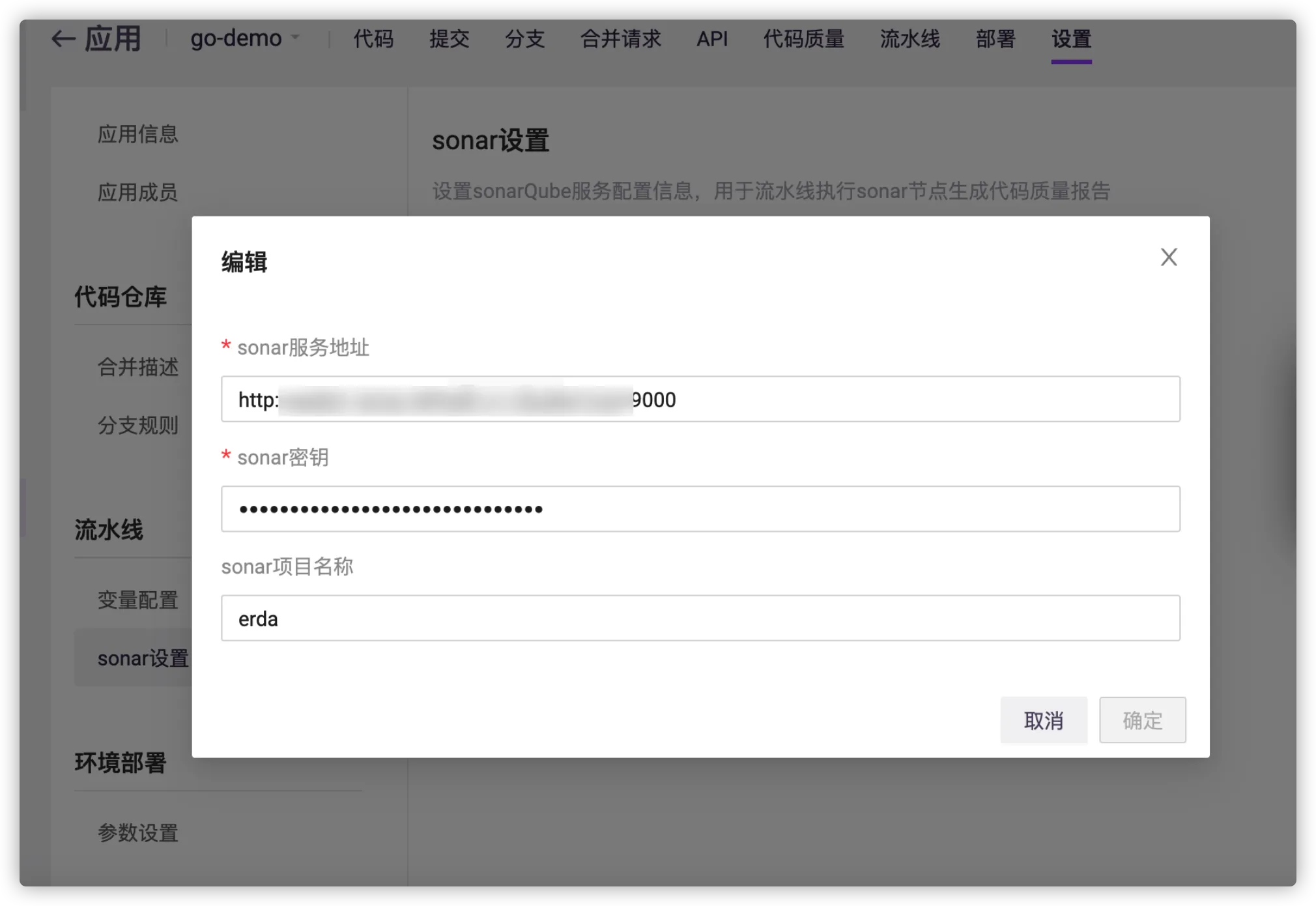 至此您已完成代码质量检查的所有前置条件。请选择需代码检查的应用,进入该应用的 设置 > Sonar 设置 配置 Sonar 信息。
