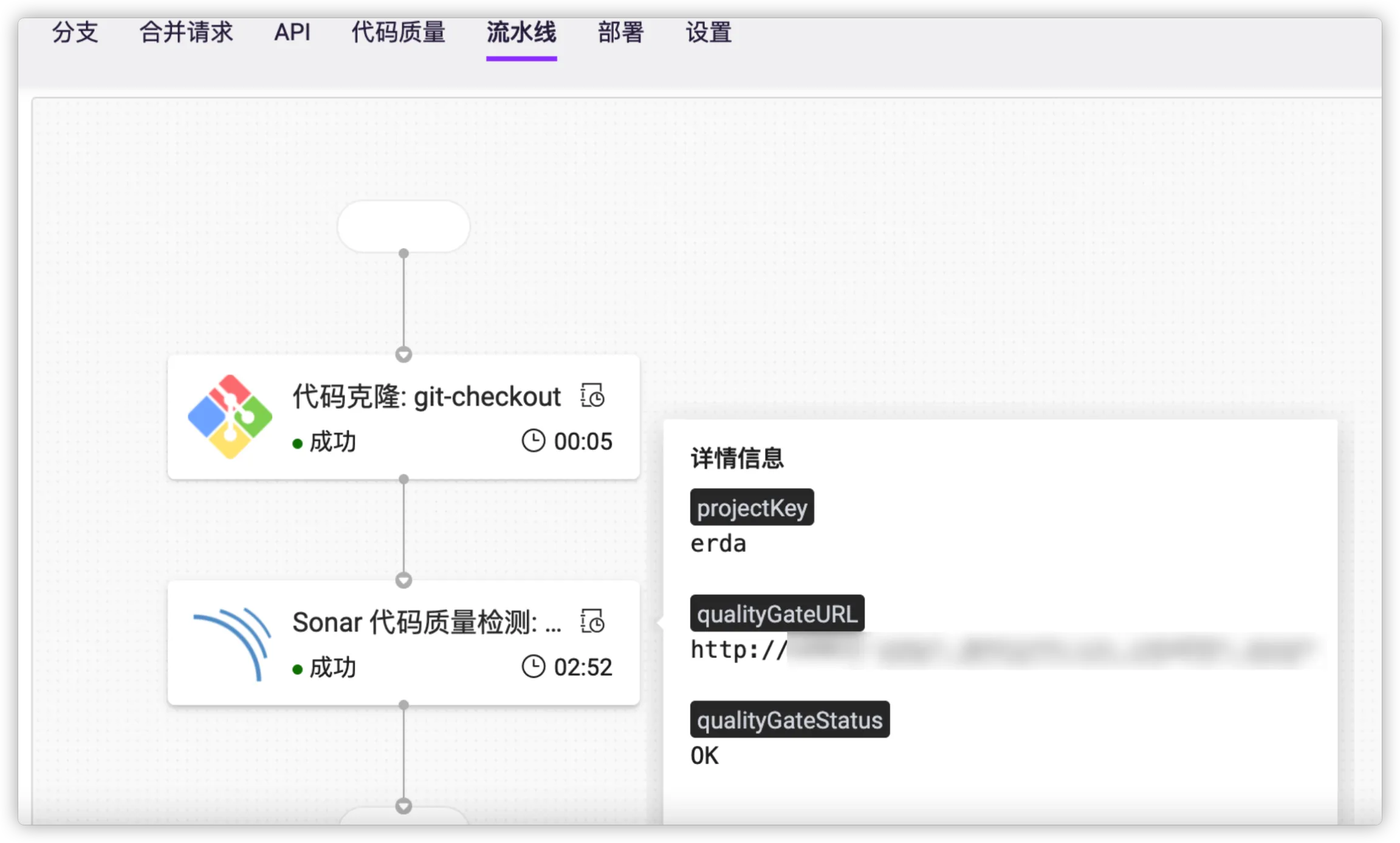 - 通常情况下,仅在代码门禁检查状态为 OK 时允许流水线后续的打包部署等操作。此时可将参数