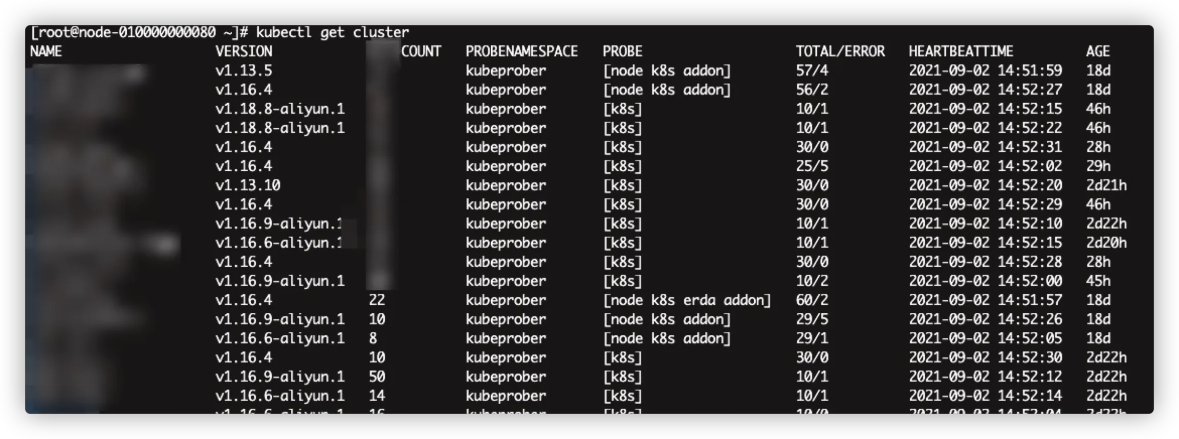 通过 kubectl probe status 可查看特定集群当前诊断结果的状态。由于诊断项为定时运行,因此通过该命令查询到的即最新诊断结果。