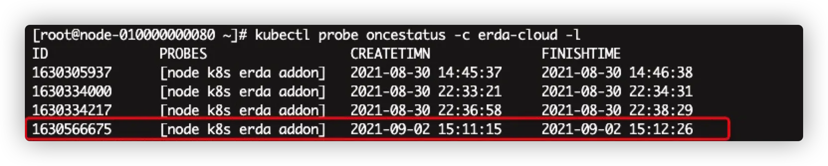 kubectl probe oncestatus -c erda-cloud -i 1630566675