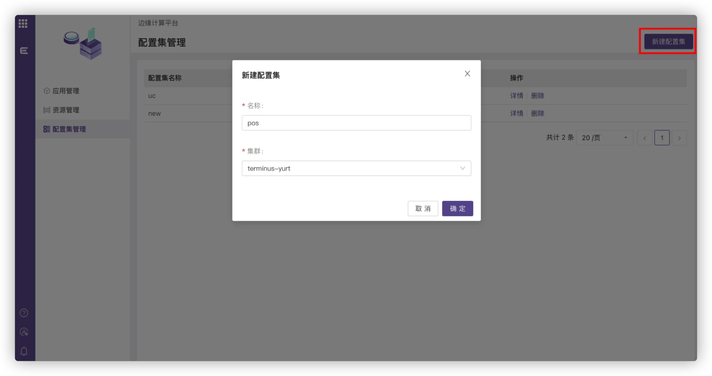 进入 边缘计算平台 > 配置集管理,点击 新建配置集。