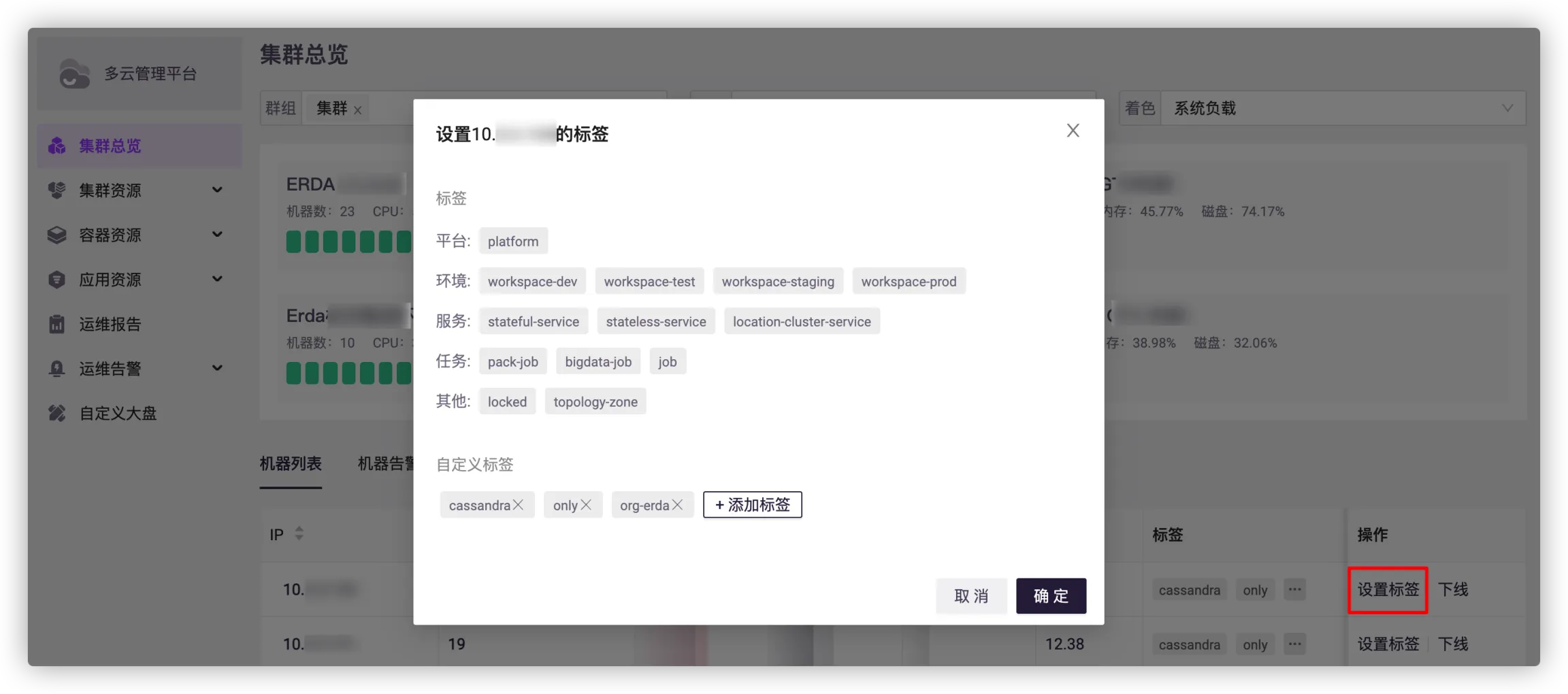 workspace-*)、stateless-service、pack-job是必需的。其余标签可参见 节点标签 按需设置。您可以通过 多云管理平台 > 集群总览 > 设置标签 设置或查看标签。