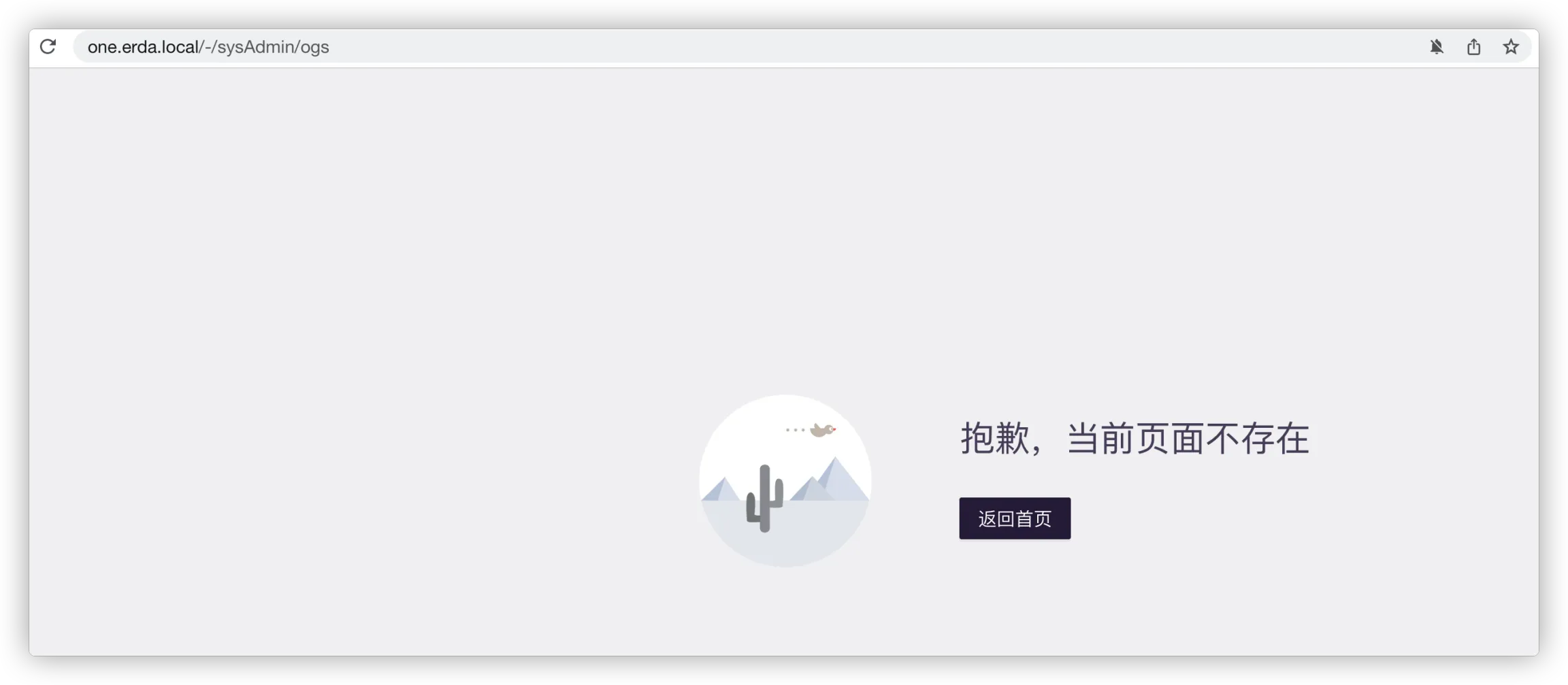 该页面地址为 sysAdmin/orgs,即超级管理员页面。该模块暂未开源(敬请期待)。Erda 将首次注册的账号默认为超级管理员,因此自动尝试跳转至该页面。