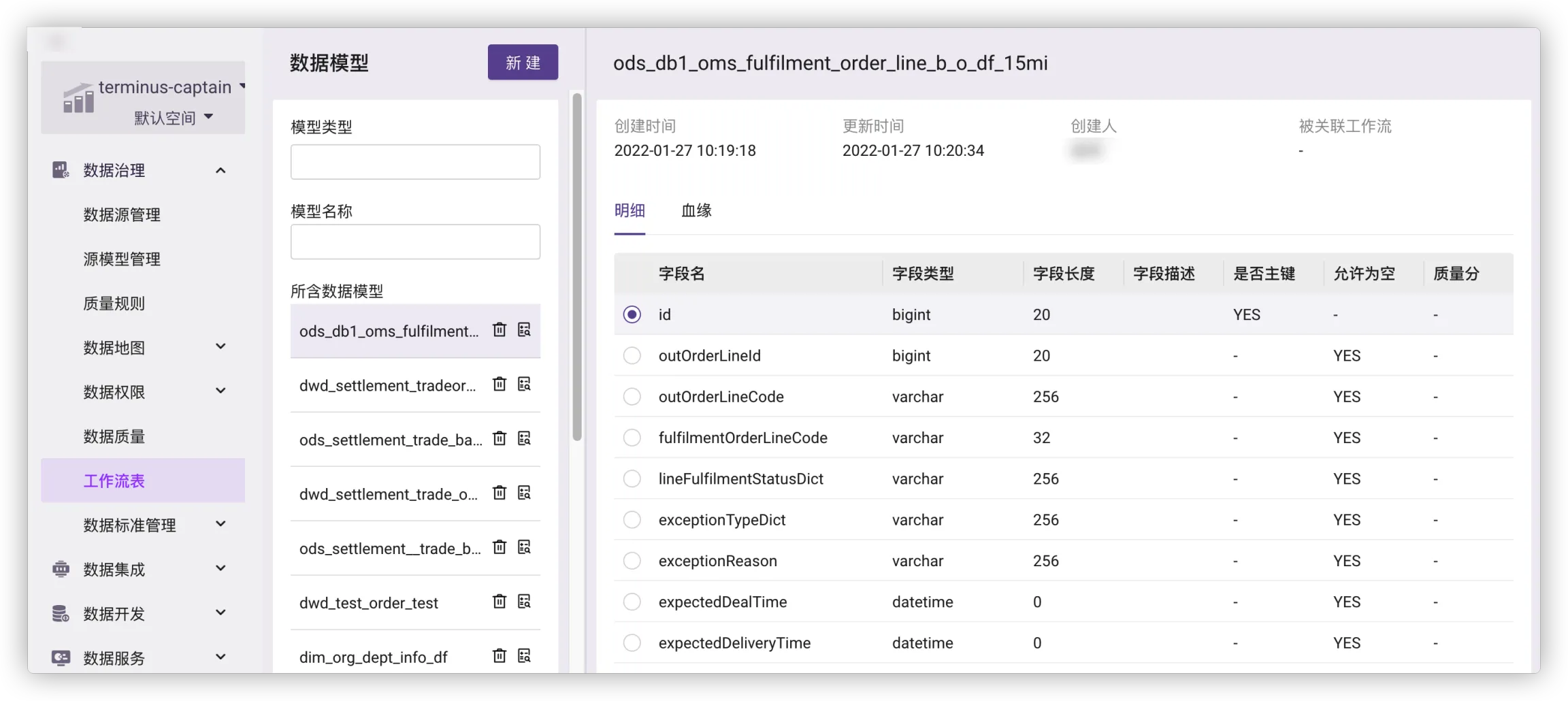如需申请权限,请进入 数据治理 > 工作流表,输入需申请的模型名称,点击图标申请授权。