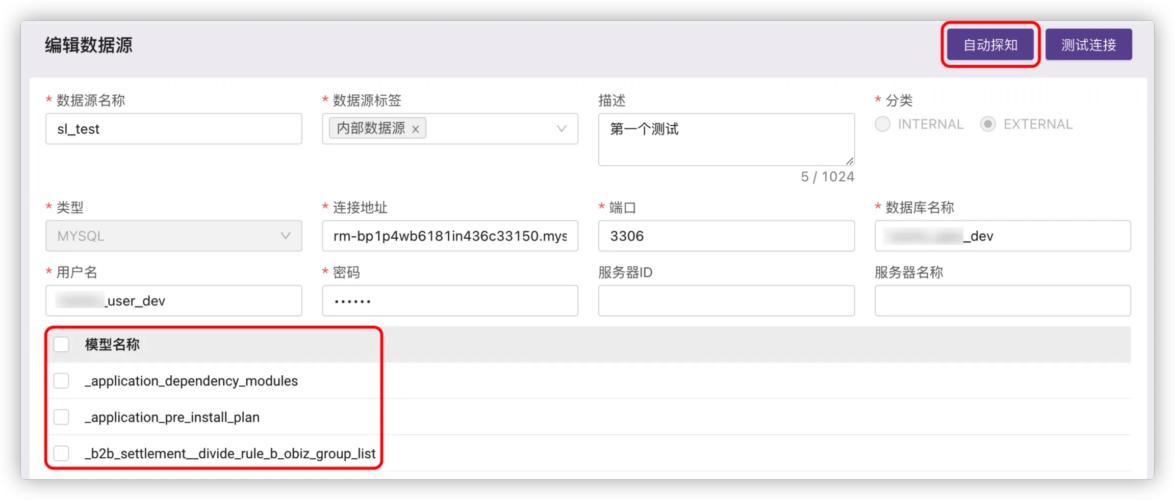 自动探知:对于 MySQL 类型的数据源,可自动探知模型,无需手动建模。