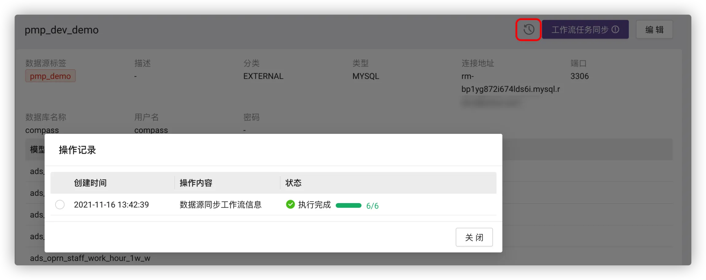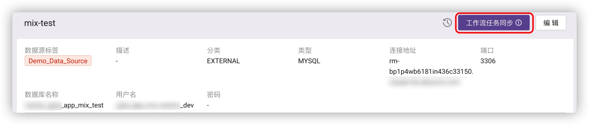 若数据源连接信息发生变化,可在数据源详情页面一键同步工作流。