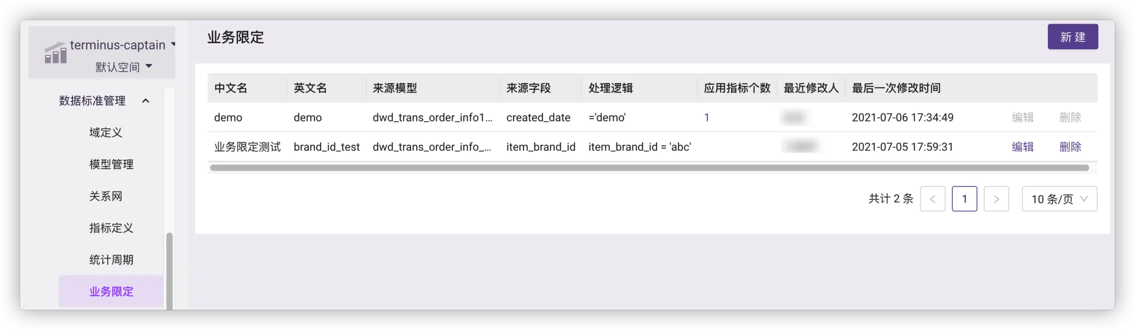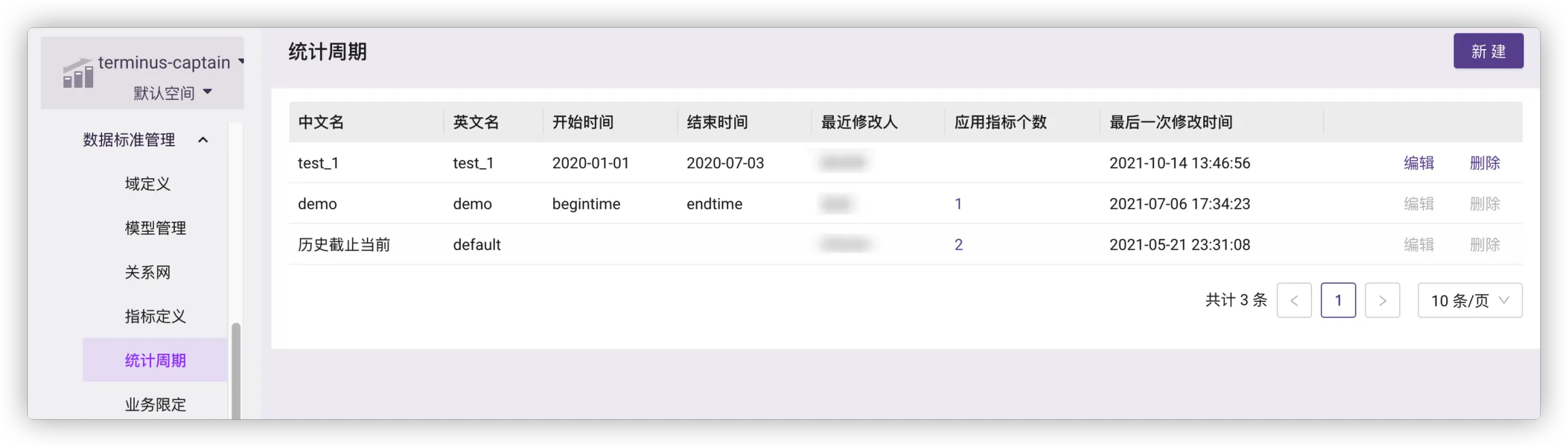 用于后续的指标统计,根据配置的时间范围统计指标数据。若被指标关联,则无法修改或删除。