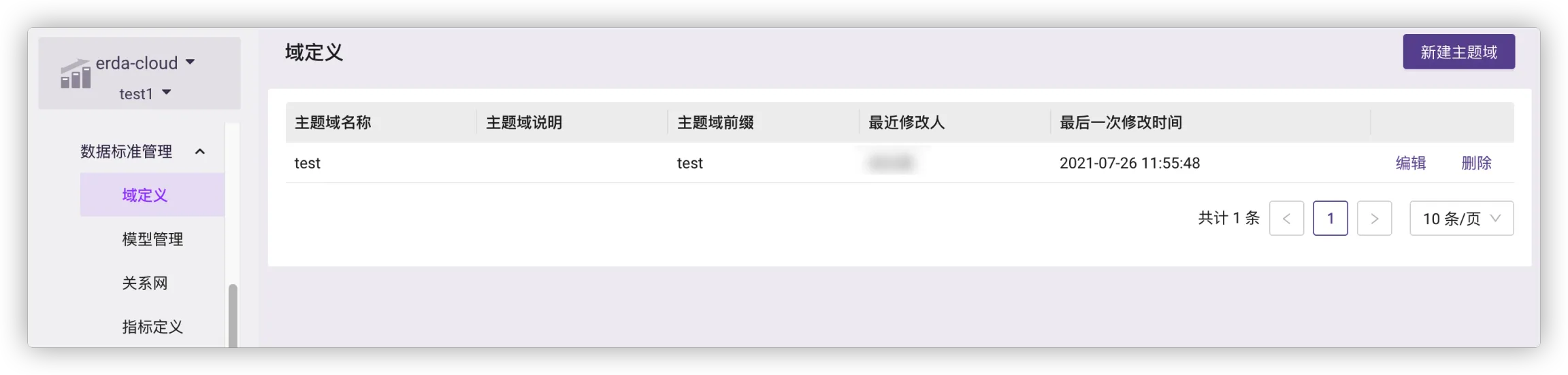 进入 数据治理 > 数据标准管理 > 域定义,根据需要新增、编辑或删除主题域。