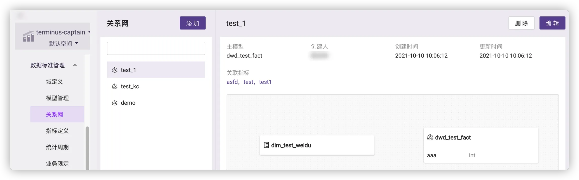 用于定义不同模型之间的字段关联关系,目前支持 Left、Right、Full 和 Inner 关联类型,后续生成自定义工作流时可自动生成两个表之间的关联关系 SQL 语句。