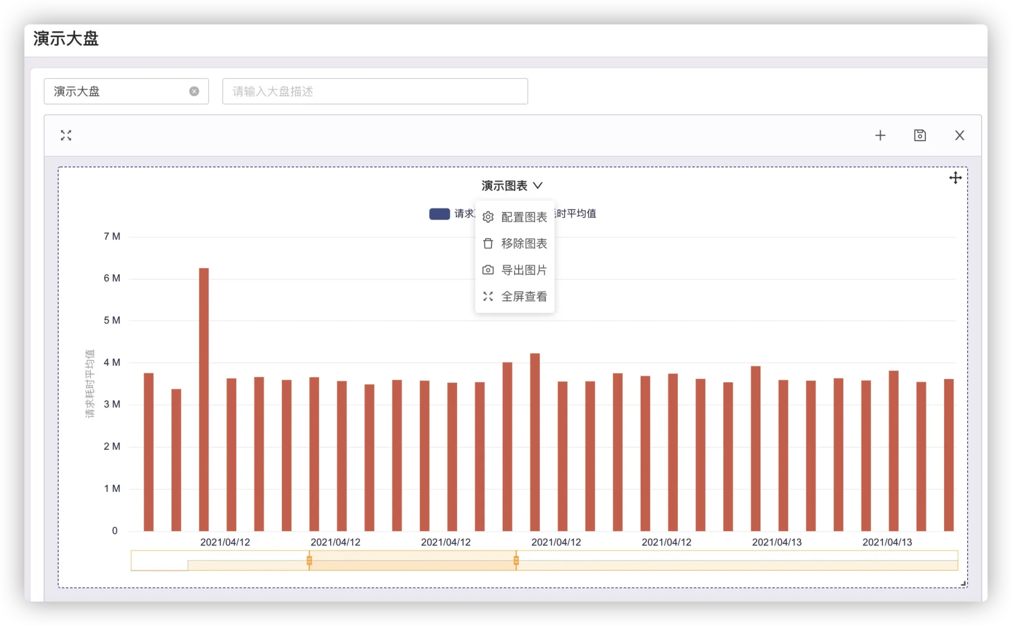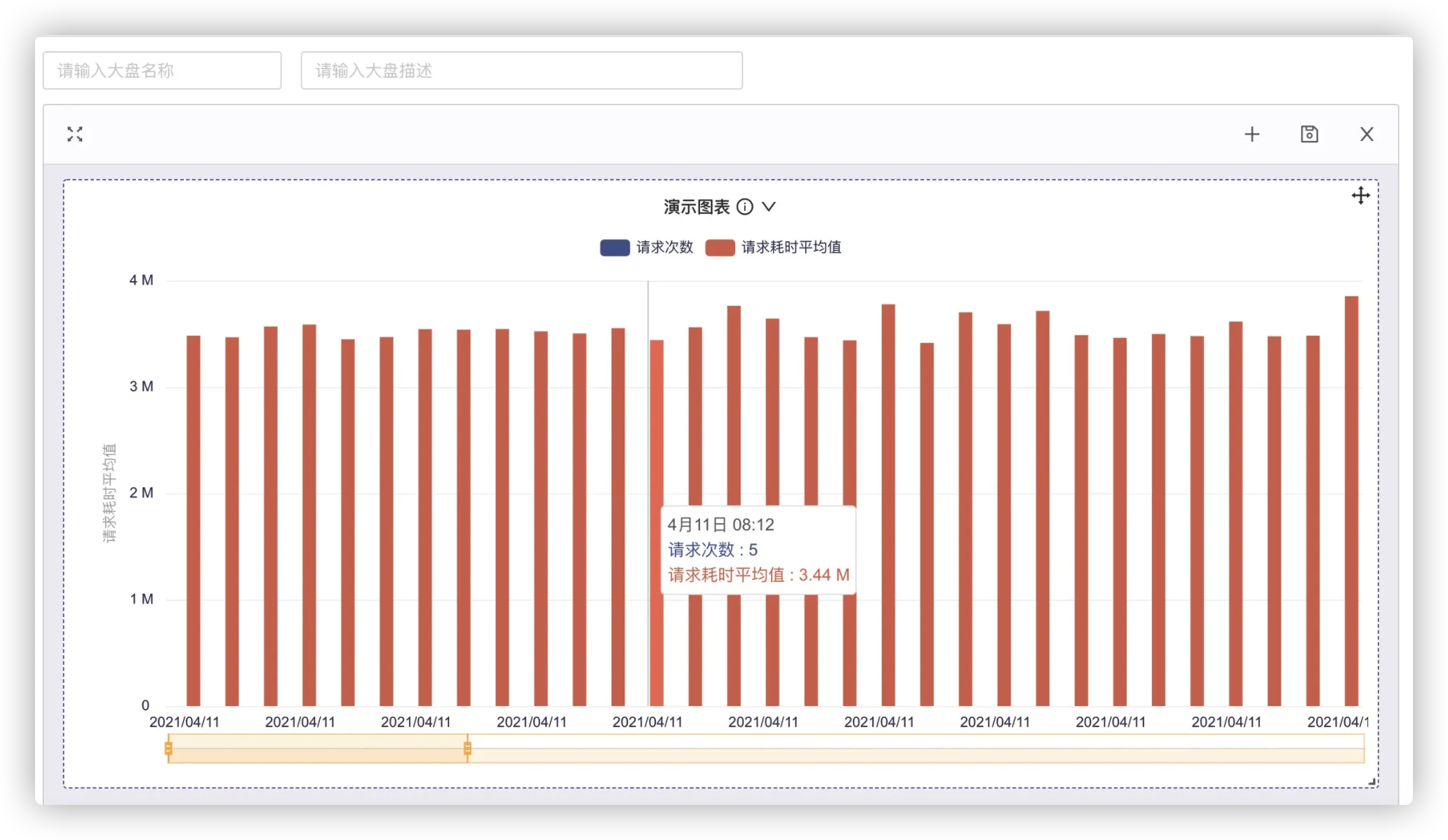 右下角确认保存返回大盘编辑器,查看大盘预览,鼠标悬浮到柱状图上,可以显示详细信息: