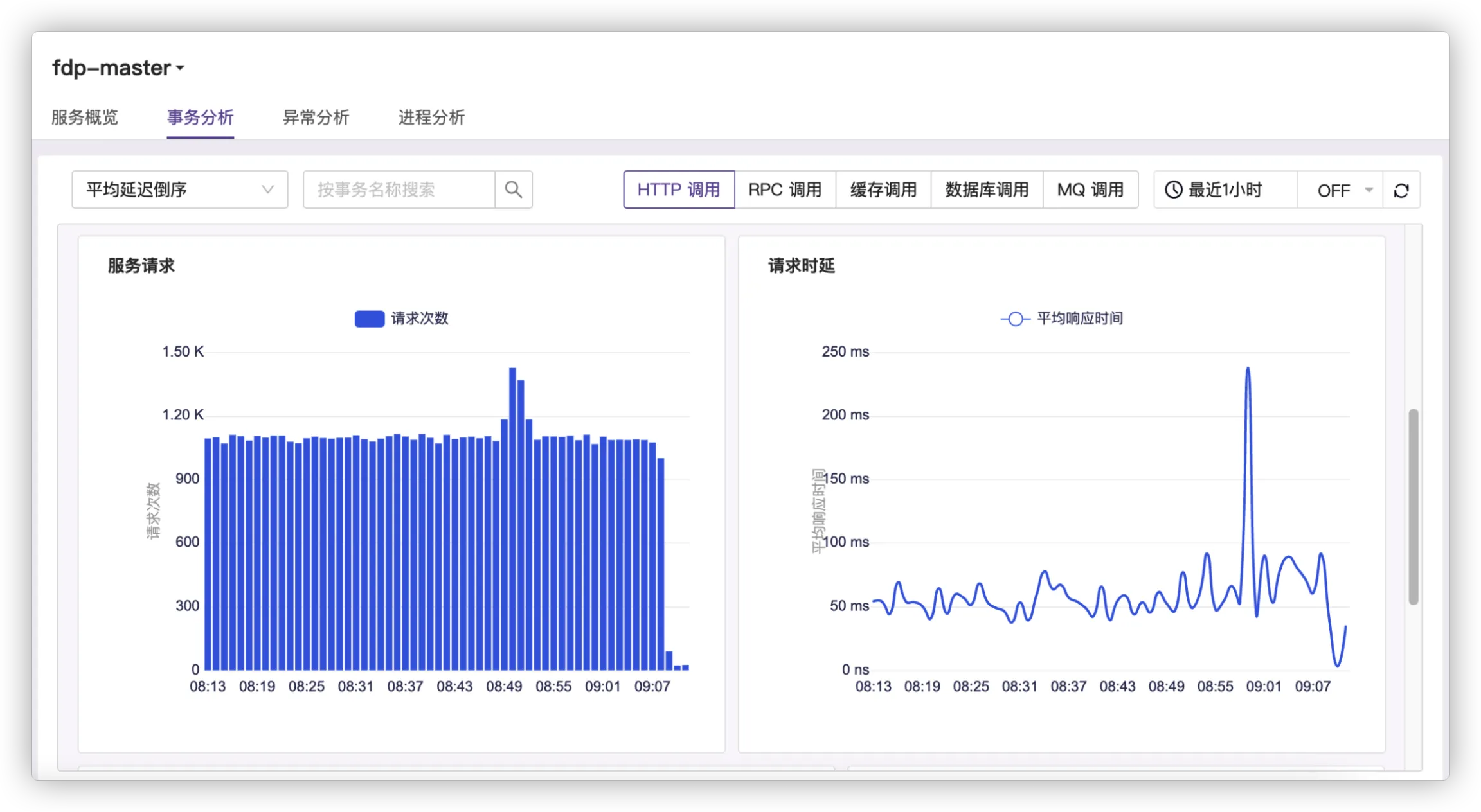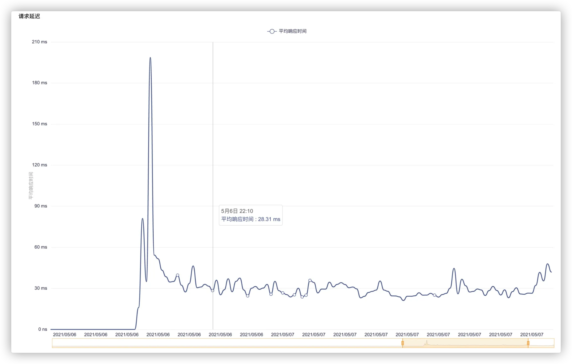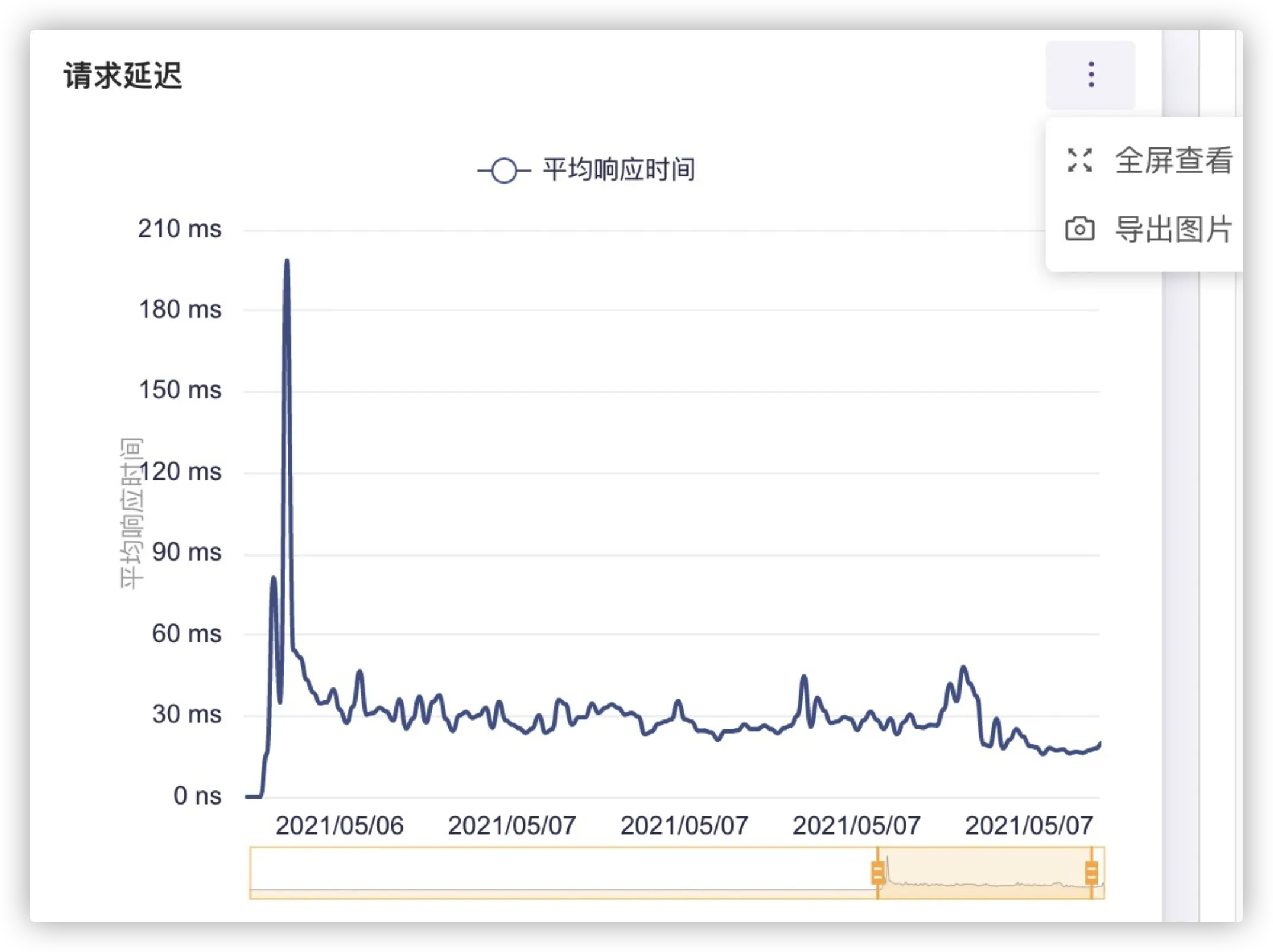 • 请求耗时平均值:指HTTP请求到响应一段时间范围内的聚合平均数。