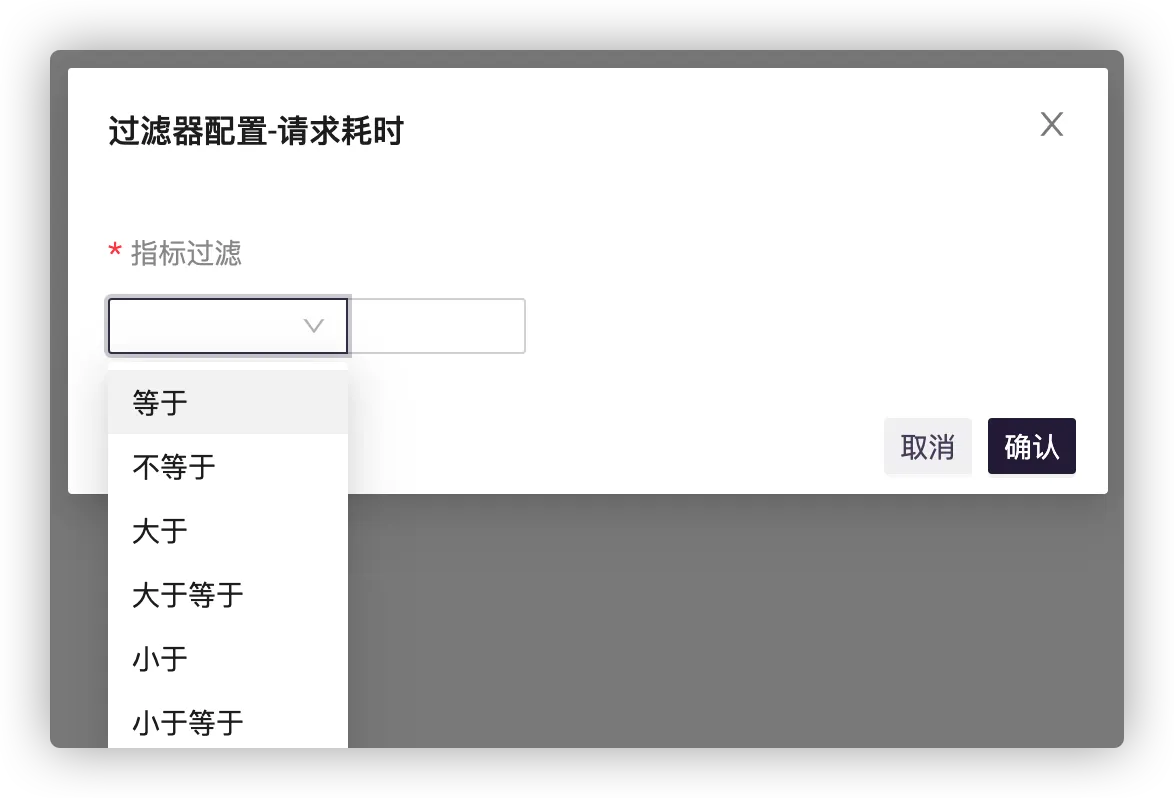 可对字段进行条件过滤,包含常用的比较运算符,也可选择自定义函数表达式。