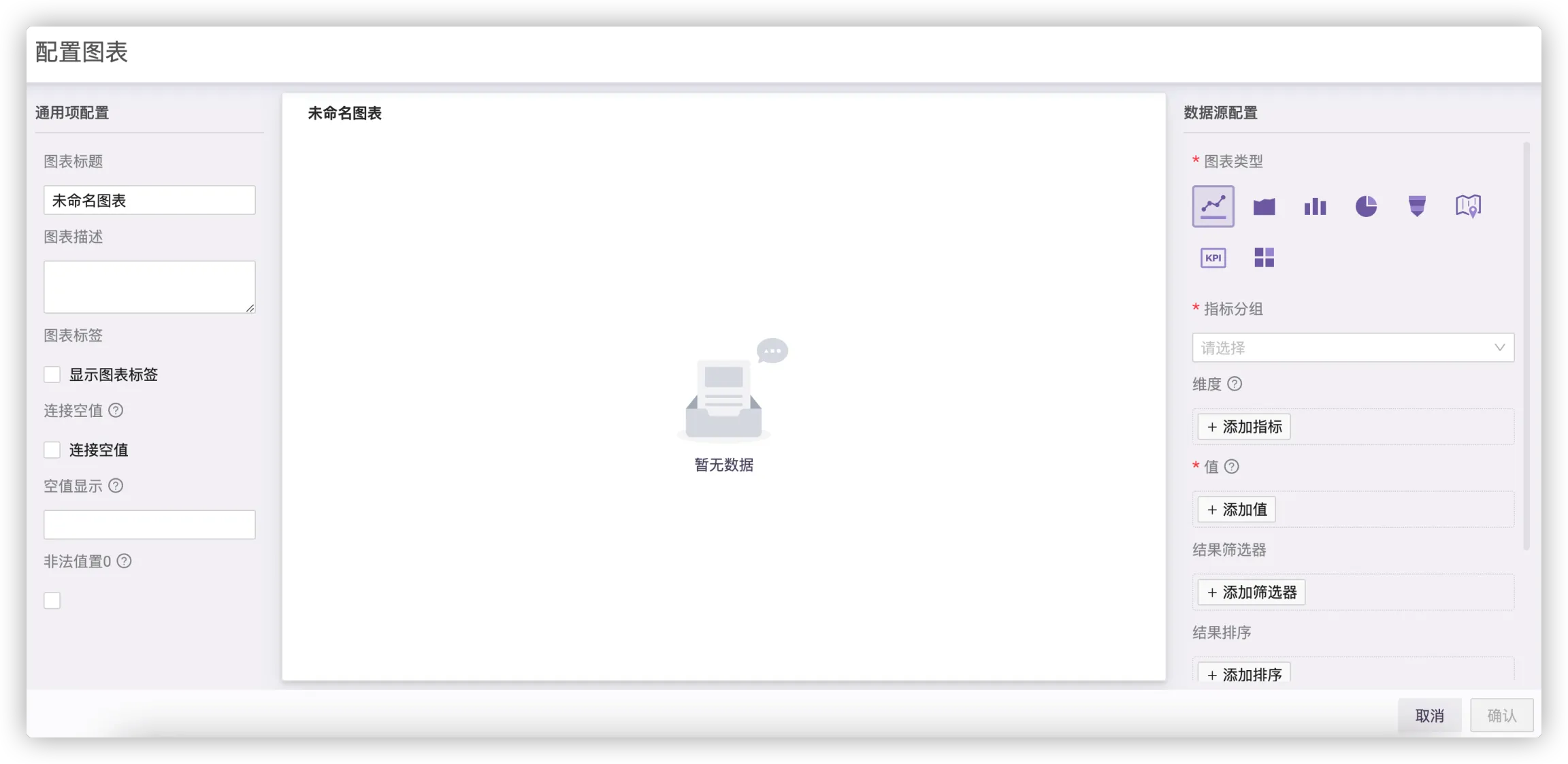 左侧通用项目可以输入图表的名称、简介等。