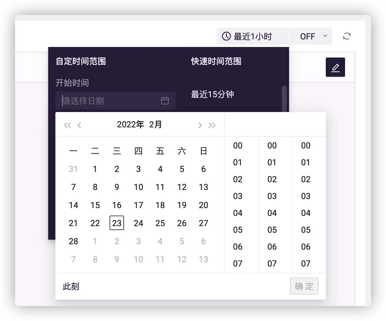 限定数据产生的时间范围,不受全局时间范围自定义配置影响。