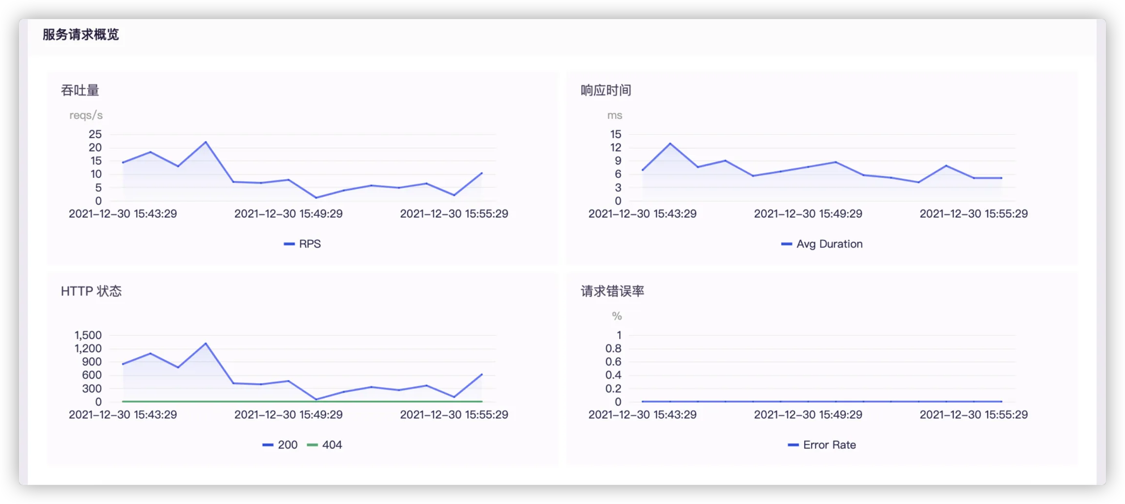 - 请求错误率:选择时间段内,该服务的所有请求错误率。