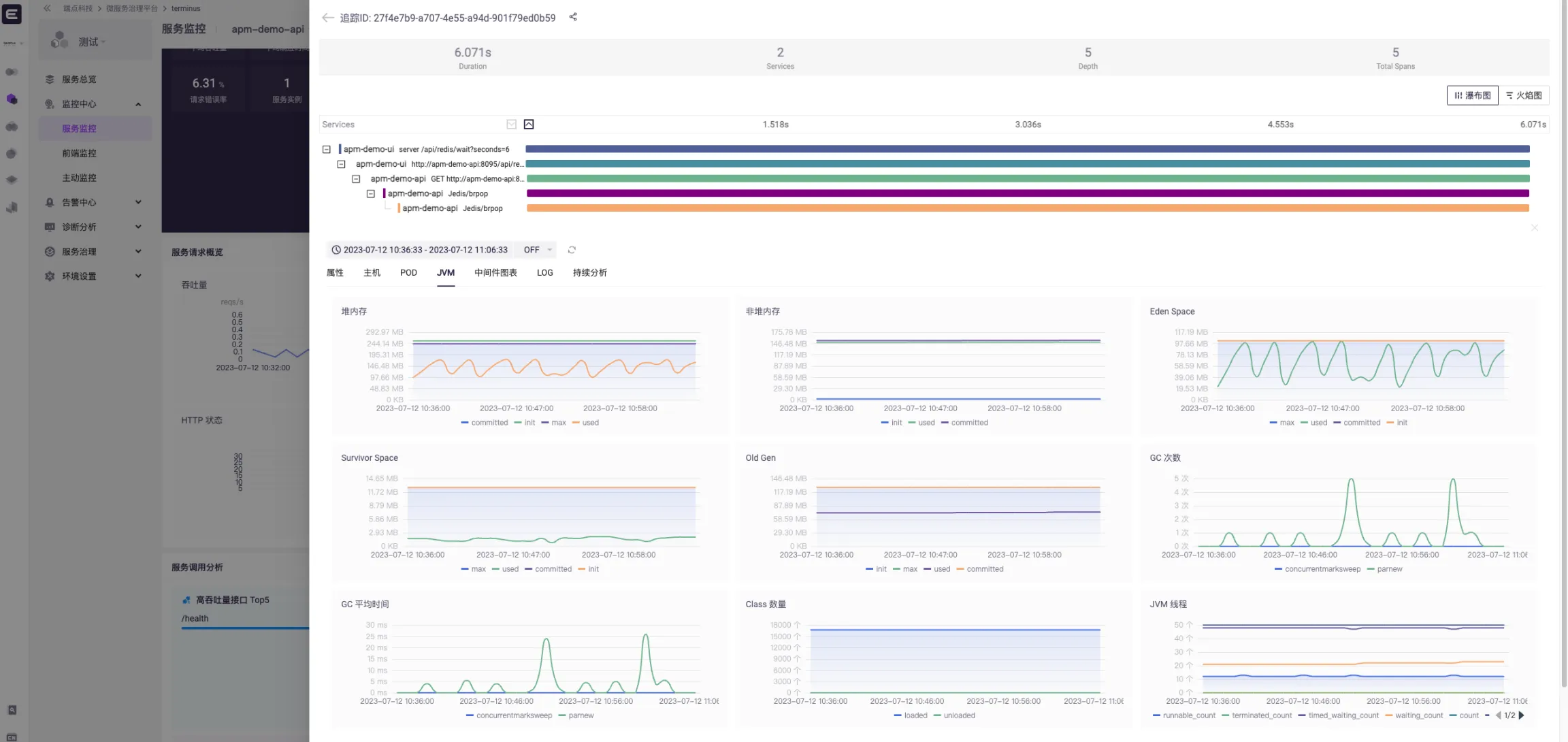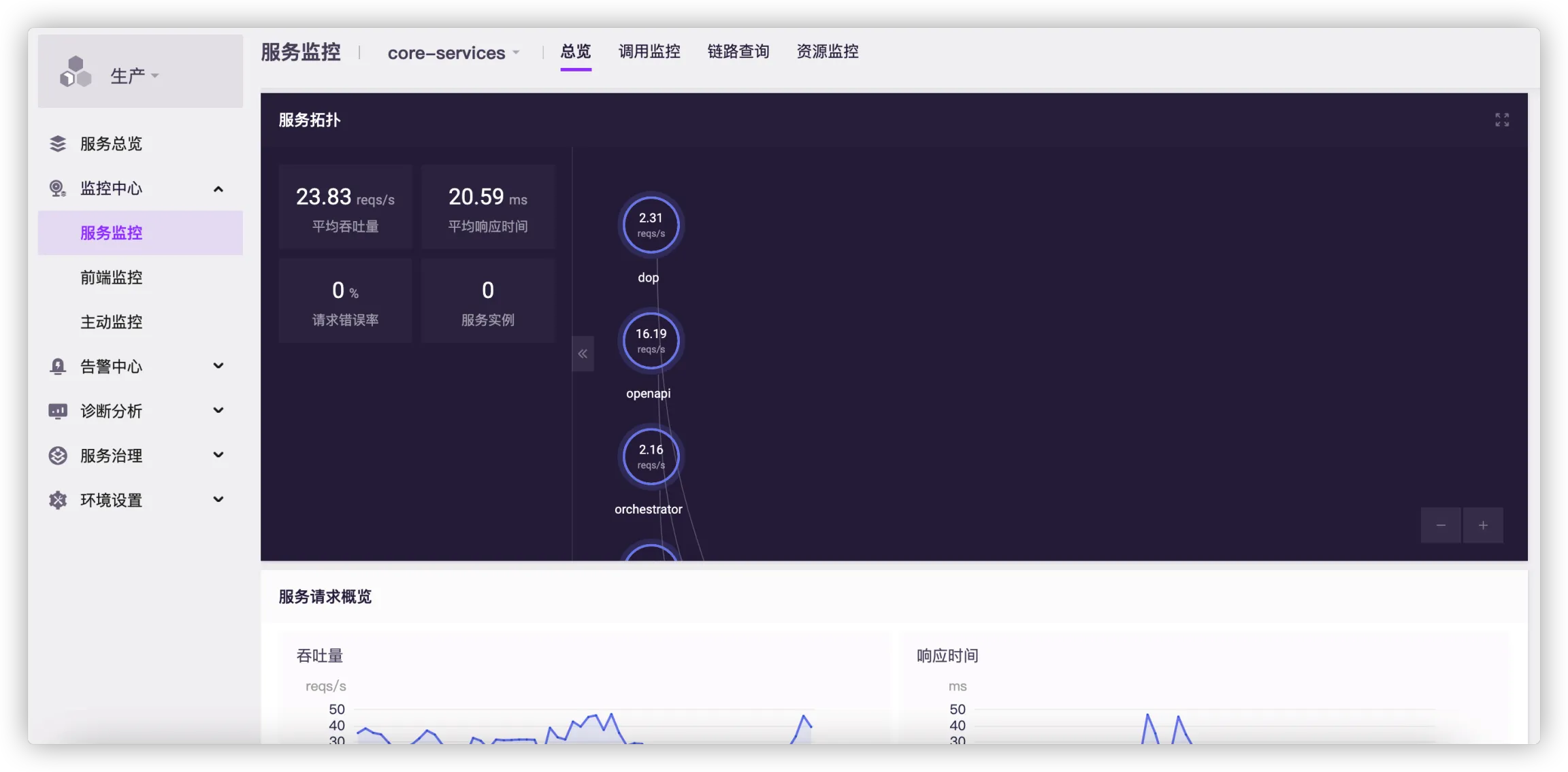 进入服务监控后,默认进入总览页。