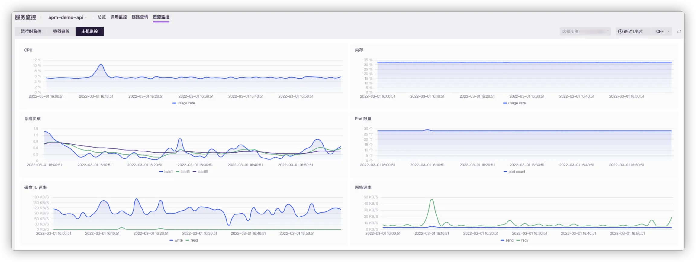 - 主机监控:查看当前服务实例所在的宿主机资源使用情况。