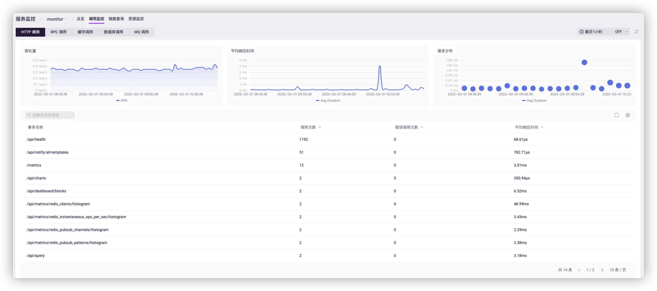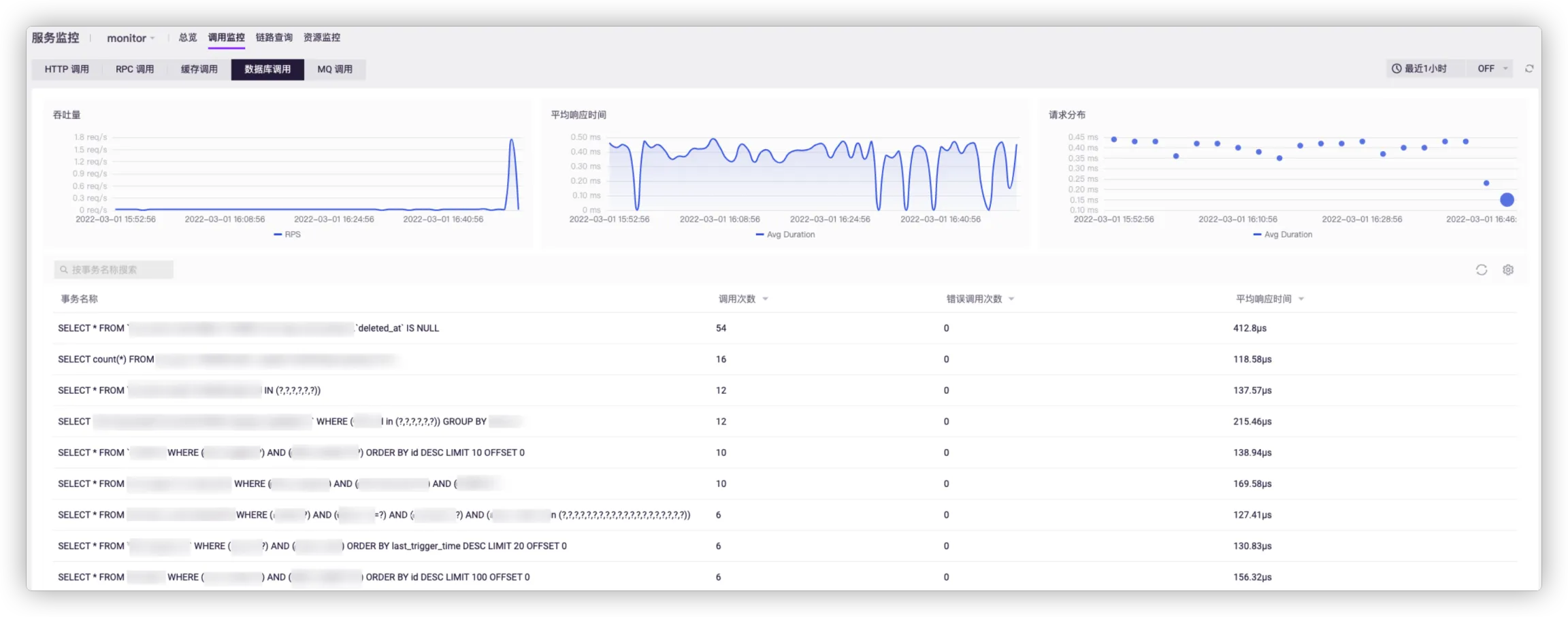 调用监控页展示 Server 应用的事务详情,包括以下五类调用监控:
