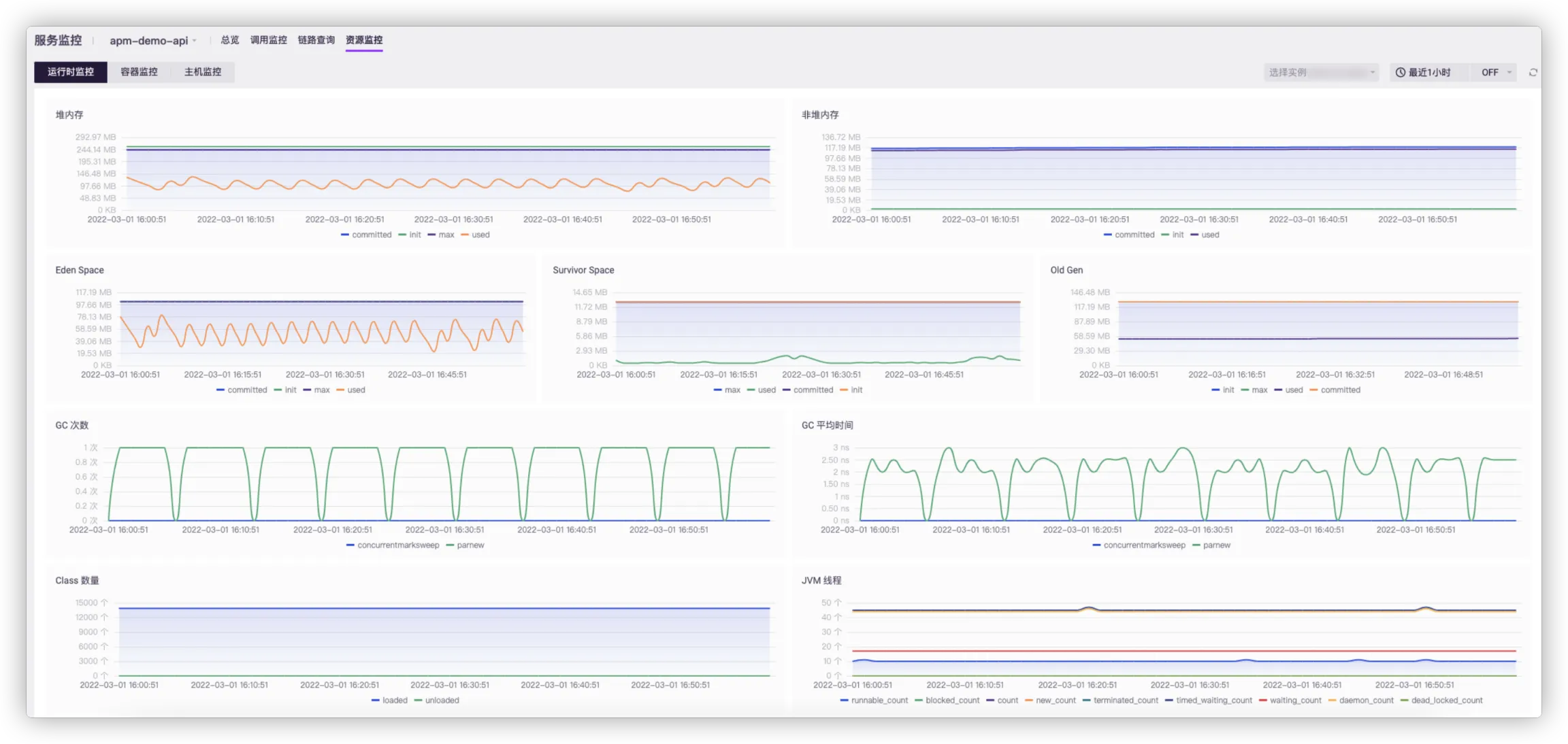 - 非堆内存:JVM 非堆内存使用情况。