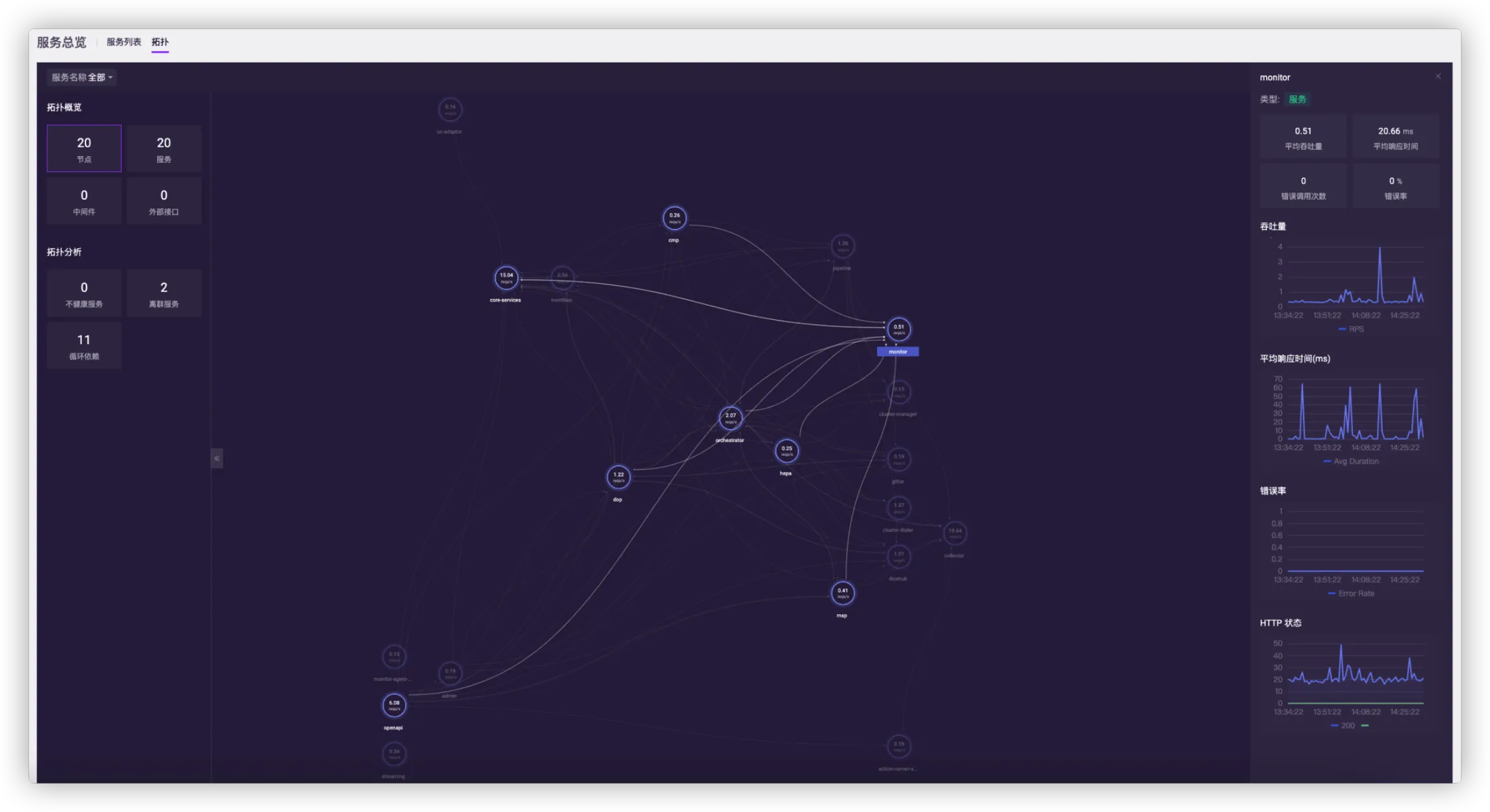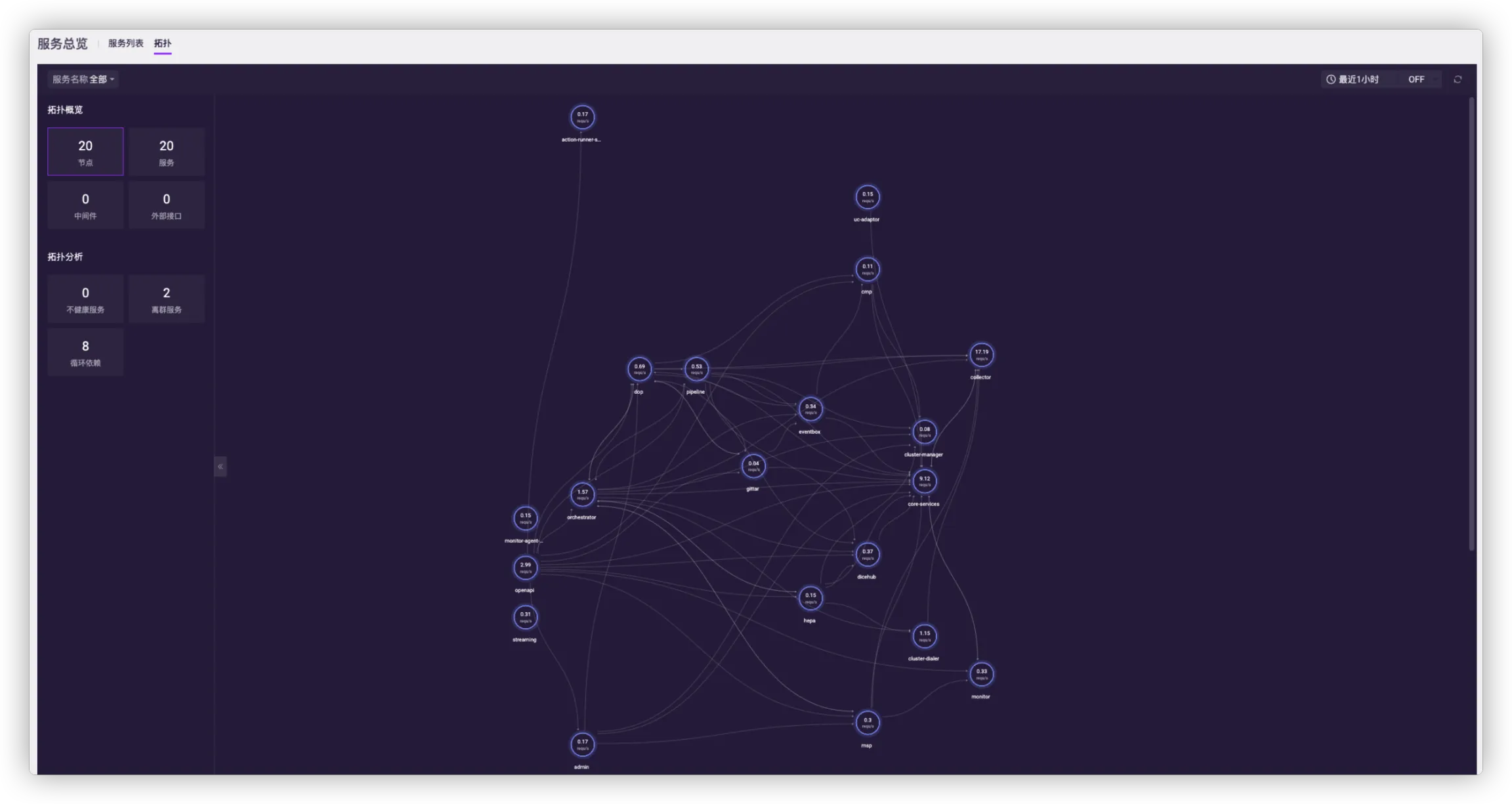 - 离群服务:离群服务数量。离群服务即与其他节点产出调用请求的服务。