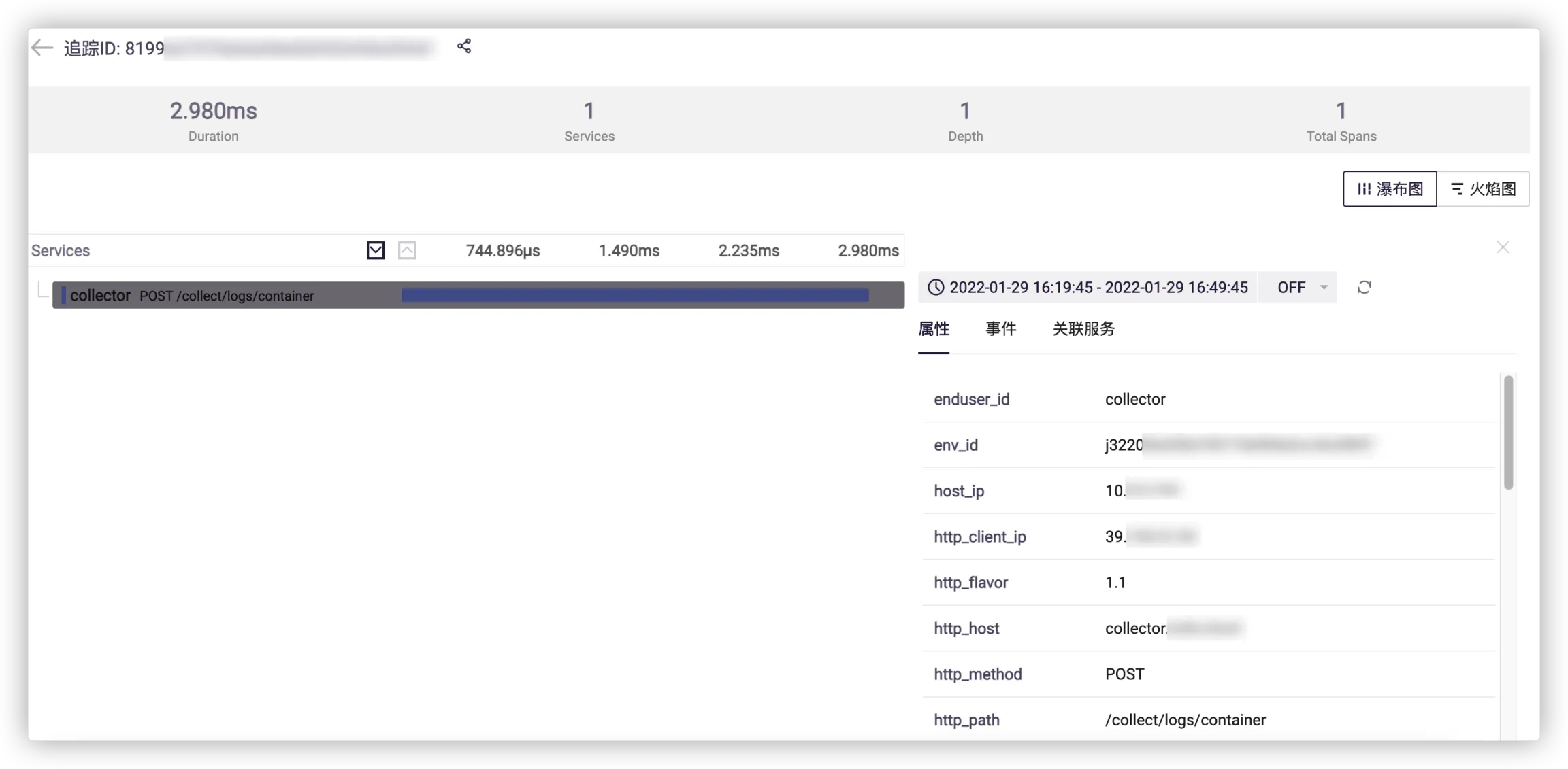 - 关联服务:可快速查看当前 Span 采集的服务相关核心指标数据。
