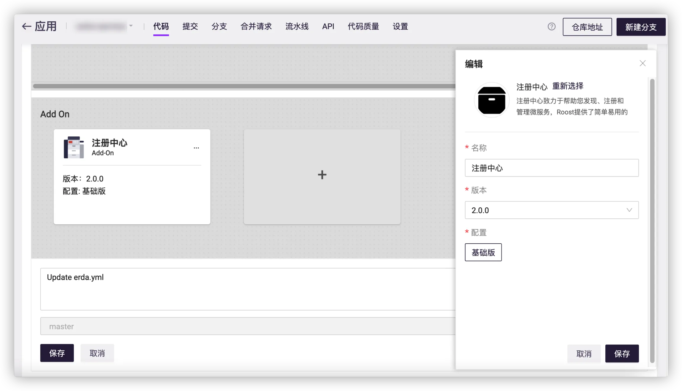 修改 dice.yml,添加注册中心 v2.0 的依赖。